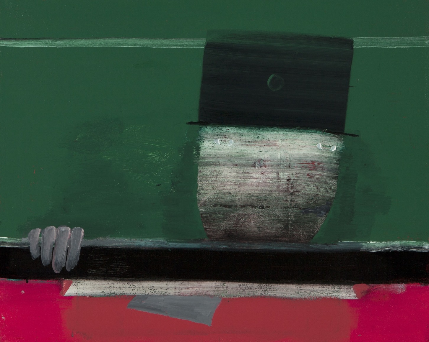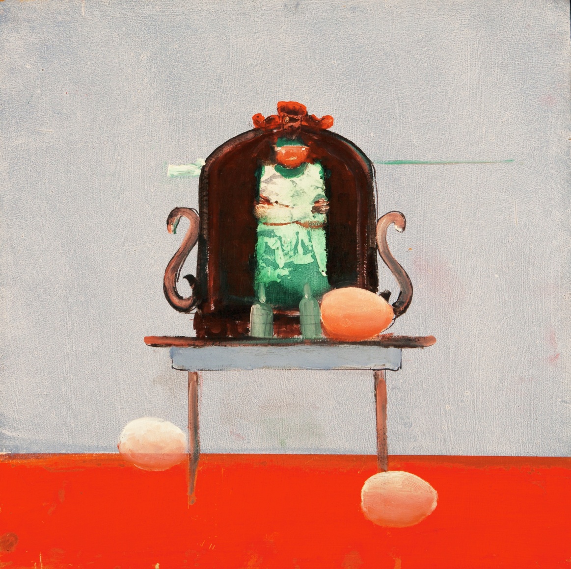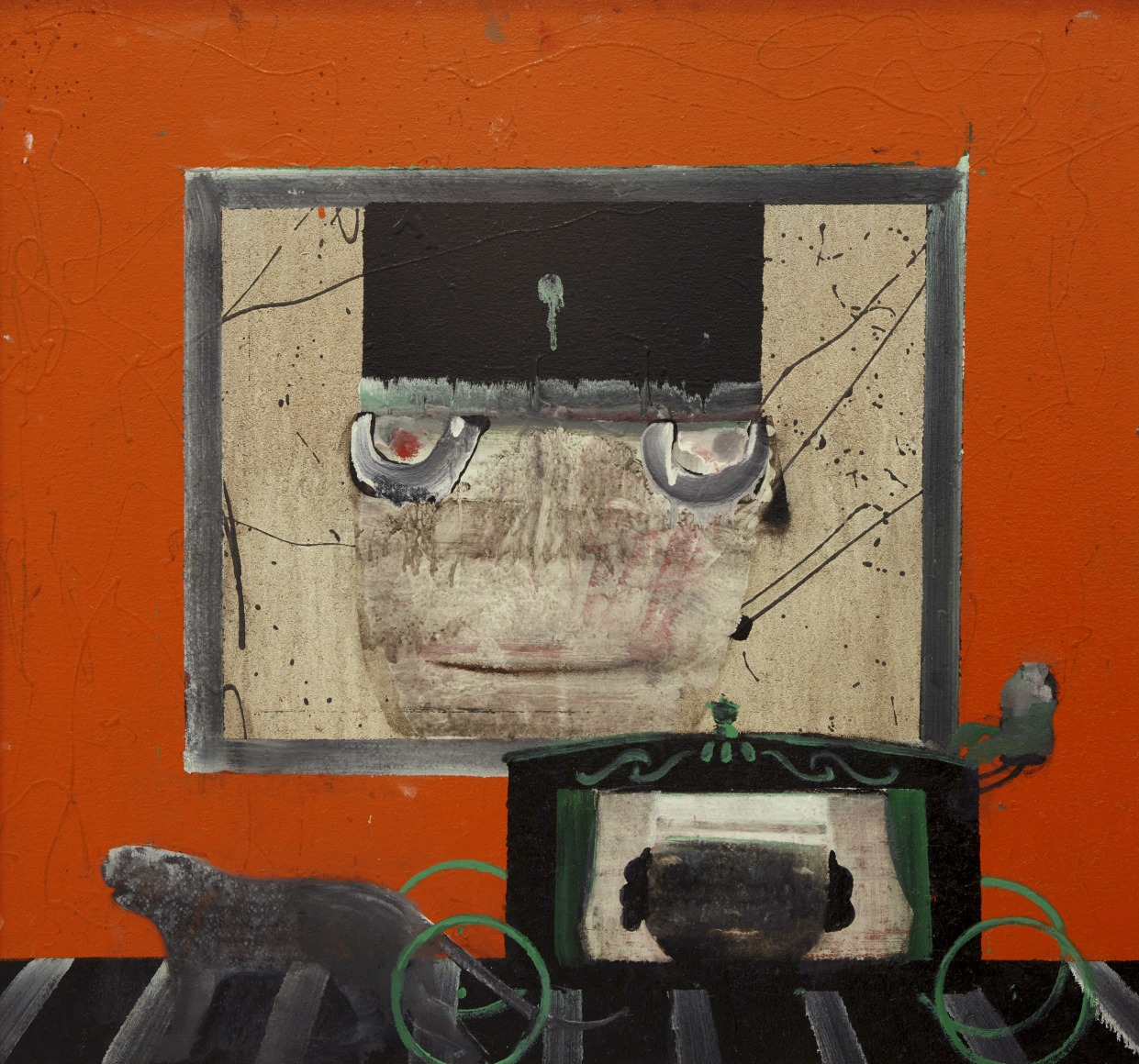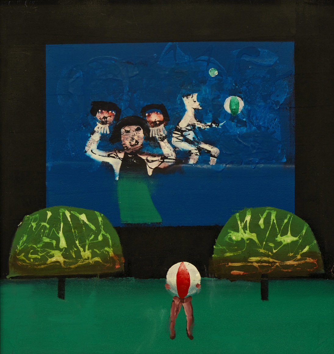 "Robert Hamilton retired to Port Clyde, Maine in 1981, after thirty four years of teaching at Rhode Island School of Design. His idiosyncratic paintings are variously inhabited by anonymous figures including tennis players, masked bandits who double as train conductors, museum guards, circus performers, military heroes, fellow artists, fighter pilots, opera singers and a menagerie of lions, tigers, and ‘Oh, my!’ characters snatched from dreams and free-floating, unbounded imagination. Within his dimly lit museum (a small octagonal room with clerestory admitting natural light), and like his cave painter ancestors, Hamilton conjured visions of what sustained him, fed his soul, a true shaman of magically real and deeply felt contemporary art.