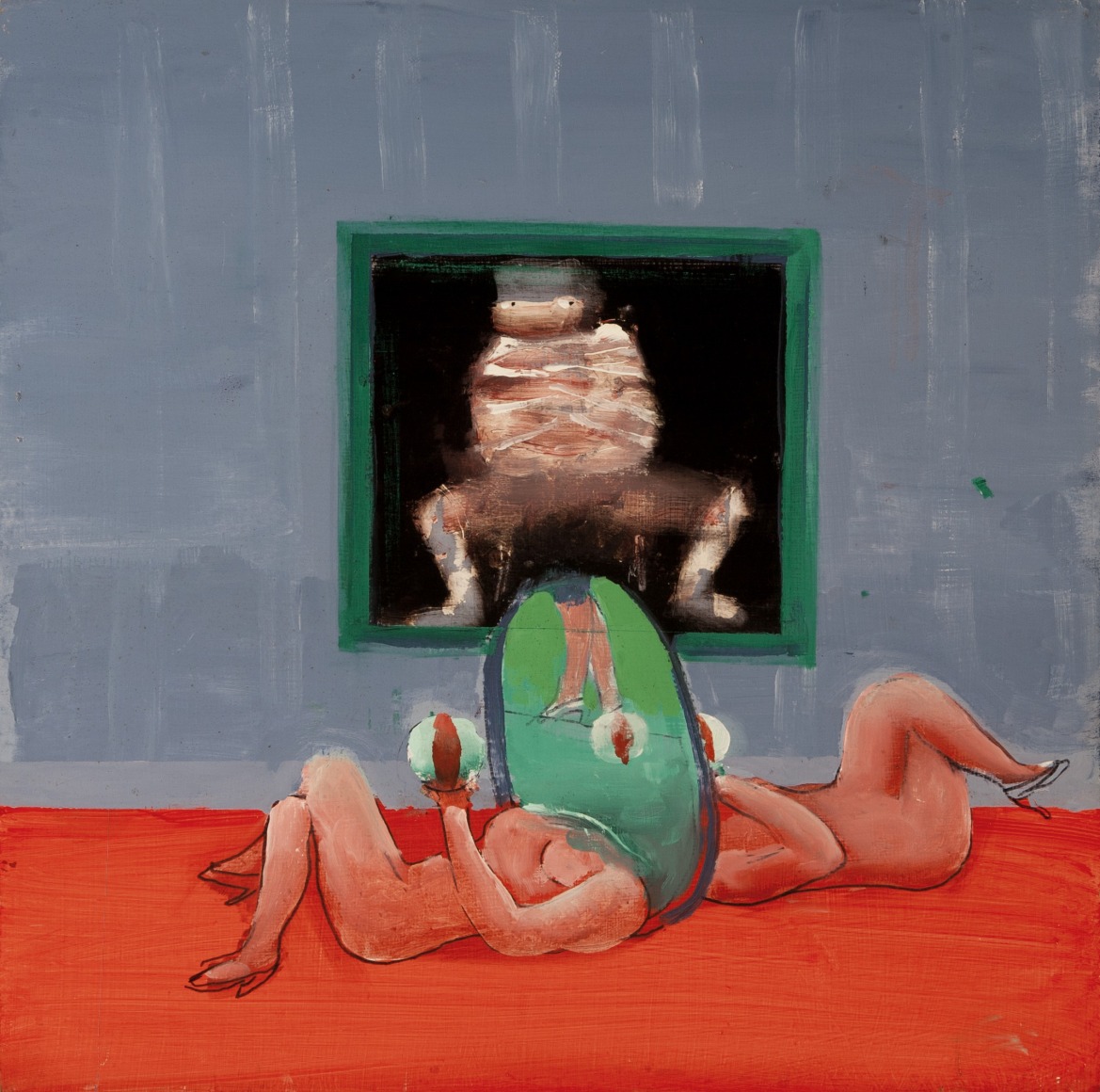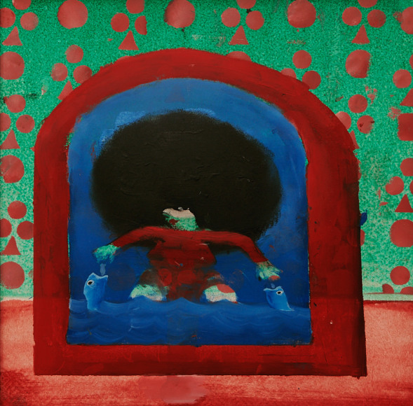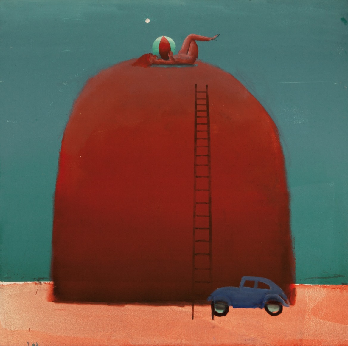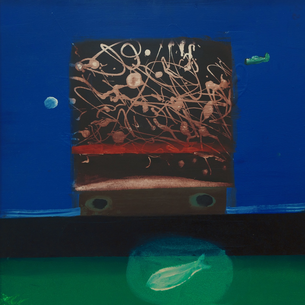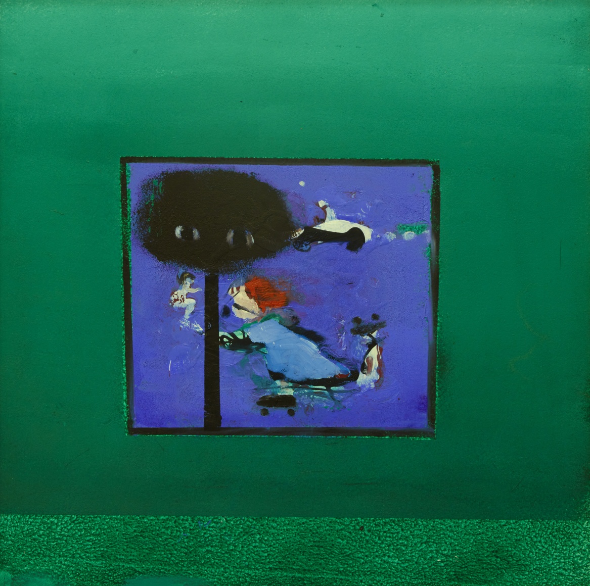 "Robert Hamilton retired to Port Clyde, Maine in 1981, after thirty four years of teaching at Rhode Island School of Design. His idiosyncratic paintings are variously inhabited by anonymous figures including tennis players, masked bandits who double as train conductors, museum guards, circus performers, military heroes, fellow artists, fighter pilots, opera singers and a menagerie of lions, tigers, and ‘Oh, my!’ characters snatched from dreams and free-floating, unbounded imagination. Within his dimly lit museum (a small octagonal room with clerestory admitting natural light), and like his cave painter ancestors, Hamilton conjured visions of what sustained him, fed his soul, a true shaman of magically real and deeply felt contemporary art.