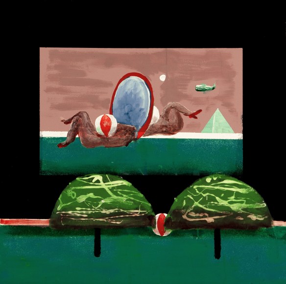 The jazz in Hamilton’s work—chromatic keys changes, compositional syncopation, riffs on favorite paintings and artists, like melodies to recall and “sample,” dissonance resolving as formal design—is always built on personal association and literally grounded in the act of painting. The process of “playing” and play was the essence of his and all of the art and artists that mattered most to him.