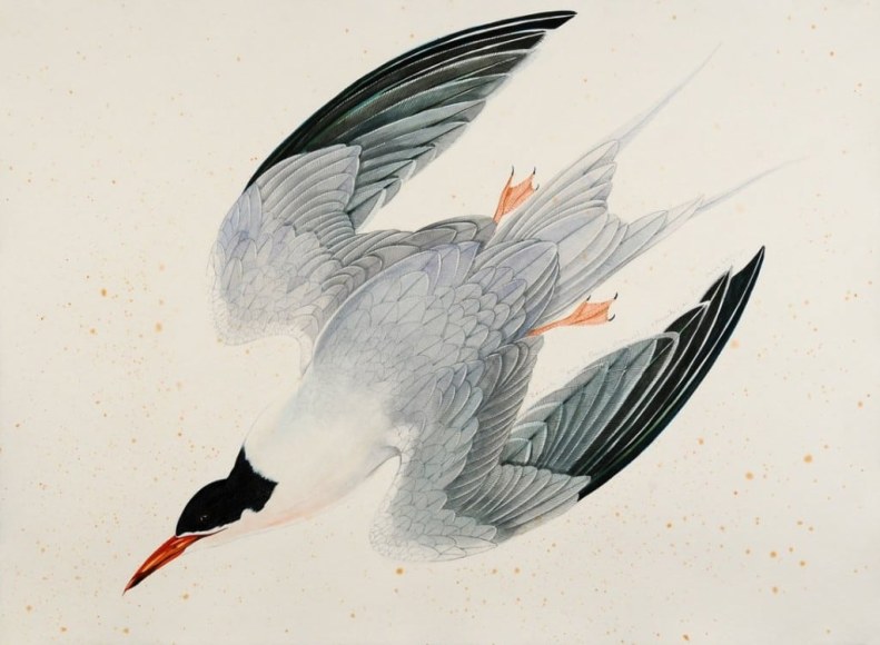 Using watercolor and gouache Kelley depicts the birds with a precision akin to Audubon or Tyson. Yet his avian portraits move beyond natural history to something poetic—and literary: a pair of herons is named Ahab and Ishmael in homage to Melville. All of them convey a sense of wonder worthy of Rachel Carson.