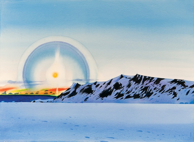 Whether he is painting a roseate tern in free fall, “the second of Sherm’s purple warp” or a Monhegan headland, Kelley is a master of the object observed. Simply stated, his art elicits awe.