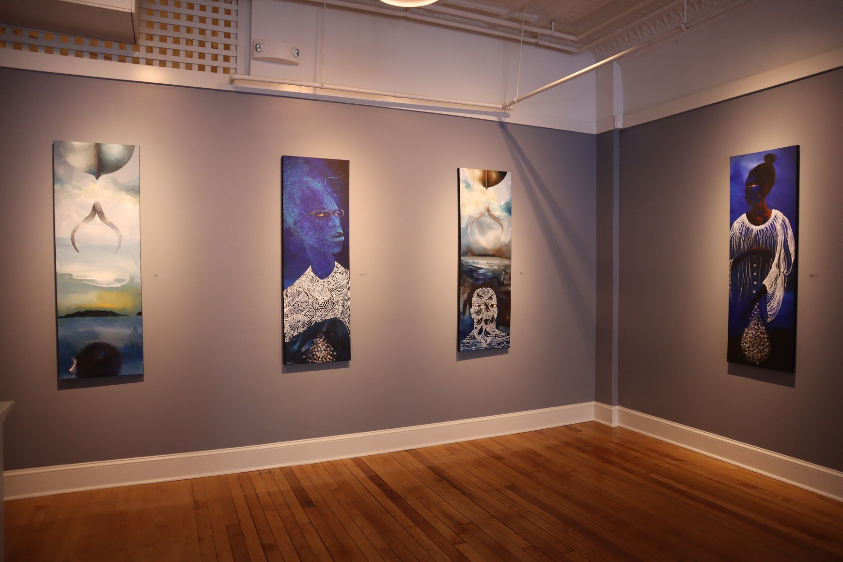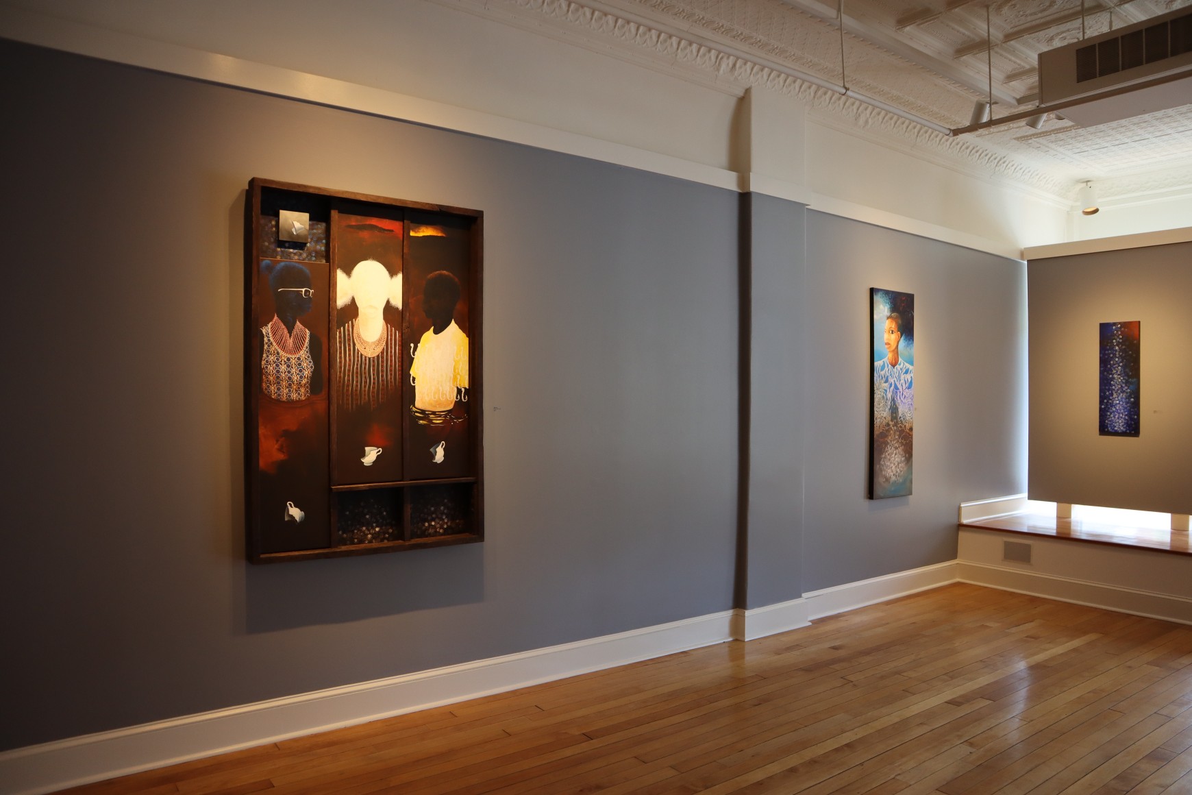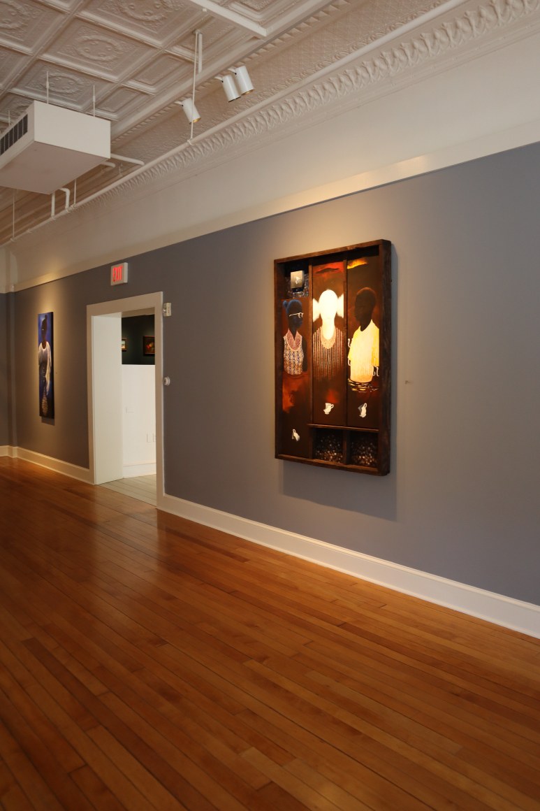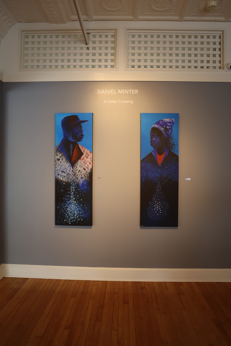 Daniel Minter is an American artist known for his work in the mediums of painting and assemblage. His overall body of work often deals with themes of displacement and diaspora. Minter’s work has been featured and acquired in permanent collection by numerous institutions and galleries including the Portland Museum of Art, Seattle Art Museum, The Charles H. Wright Museum, Tacoma Art Museum, Bates College, University of Southern Maine, Center for Maine Contemporary Art, Bowdoin College Art Museum, Farnsworth Art Museum, Bates College Museum of Art, The David C. Driskell Center and the Northwest African American Art Museum. In 2021 Minter was awarded the prestigious Joyce Award. In that same year he was awarded the distinguished Caldecott Medal. Minter has traveled extensively across the African Diaspora. A travel grant from the National Endowment for the Arts enabled him to live and work in Salvador, Bahia Brazil where he established relationships that have continued to nurture his life and work in important ways.