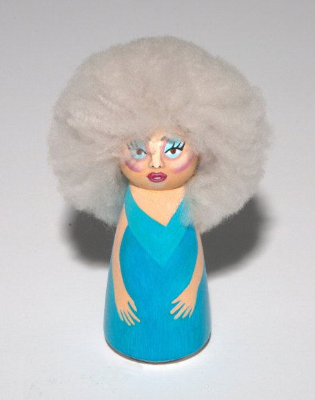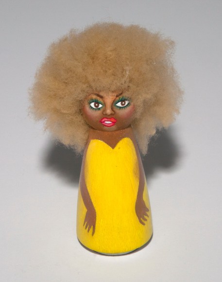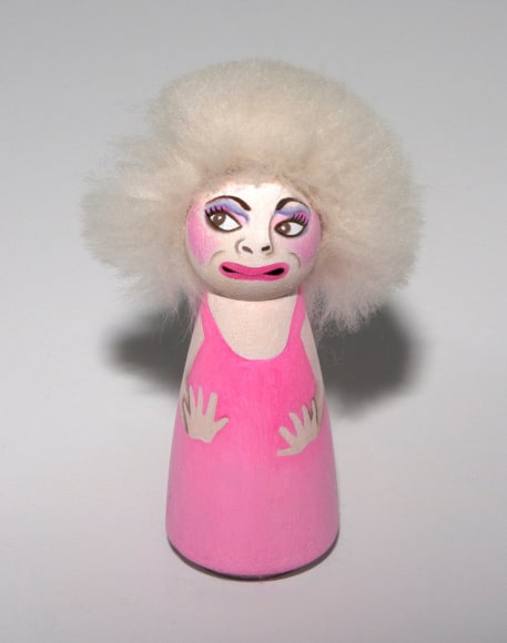 Oil on wood doll and sheepskin hair