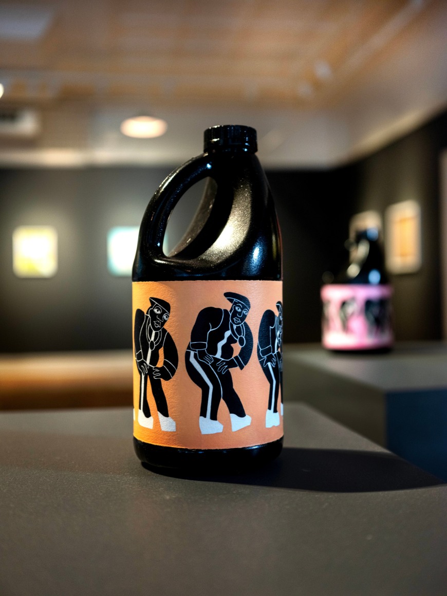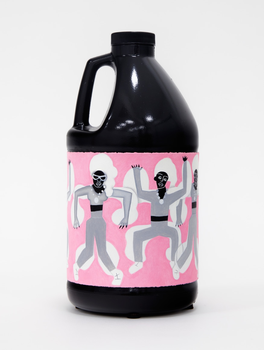 The vessels with dancers are inspired by 90’s New Orleans outsider artist Chuck Crosby who paint-ed Egyptian Chagall-like characters on bleach bottles in the style of Greek clay vessels. All are images of breaking free from the finite world of thought into a poetic world of awareness.