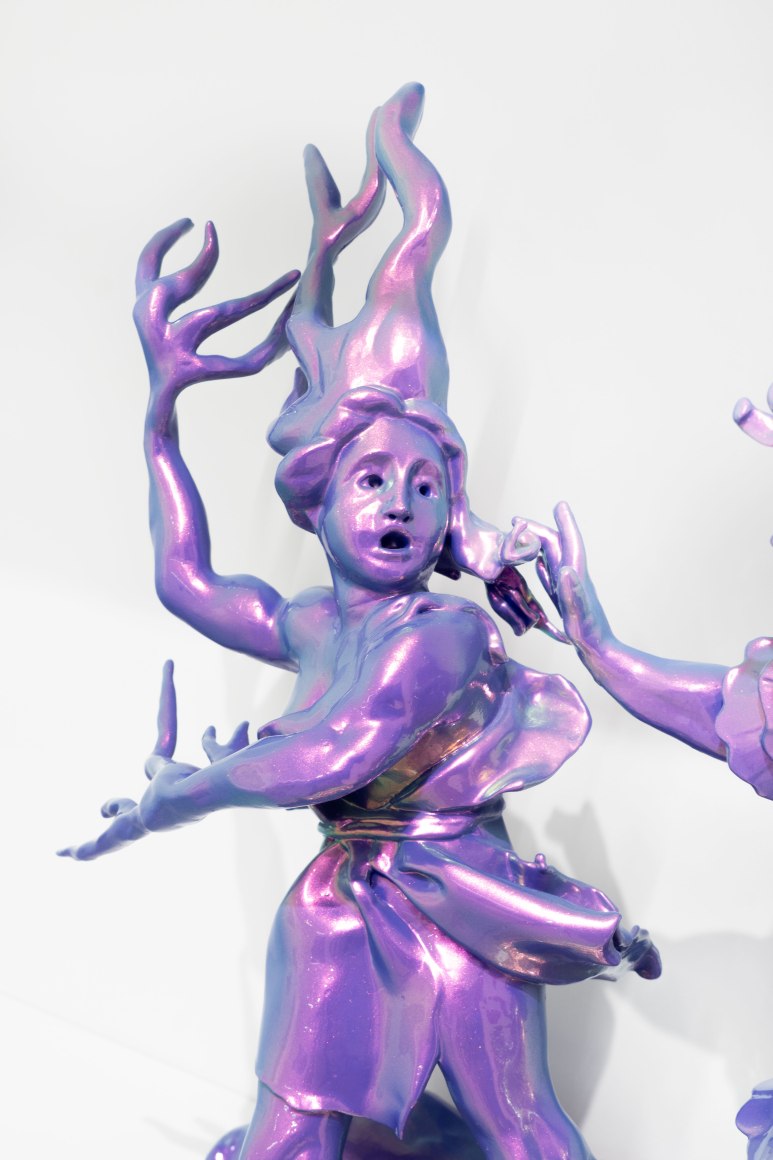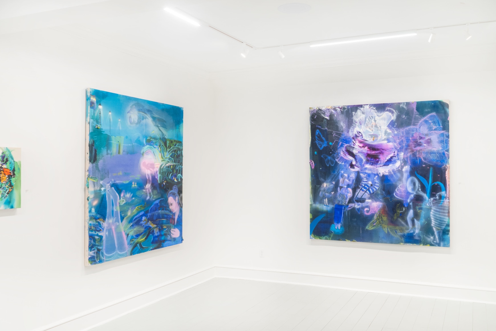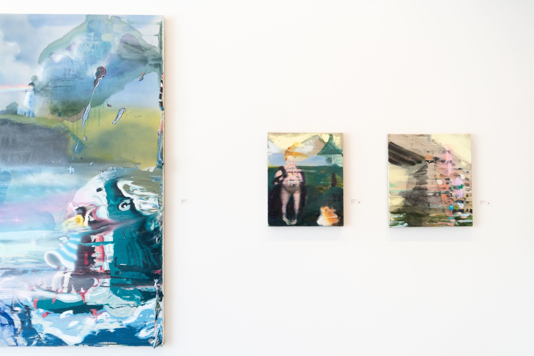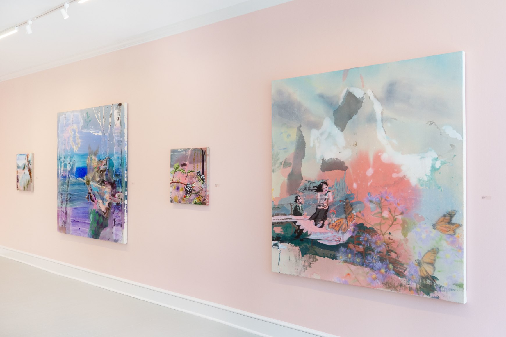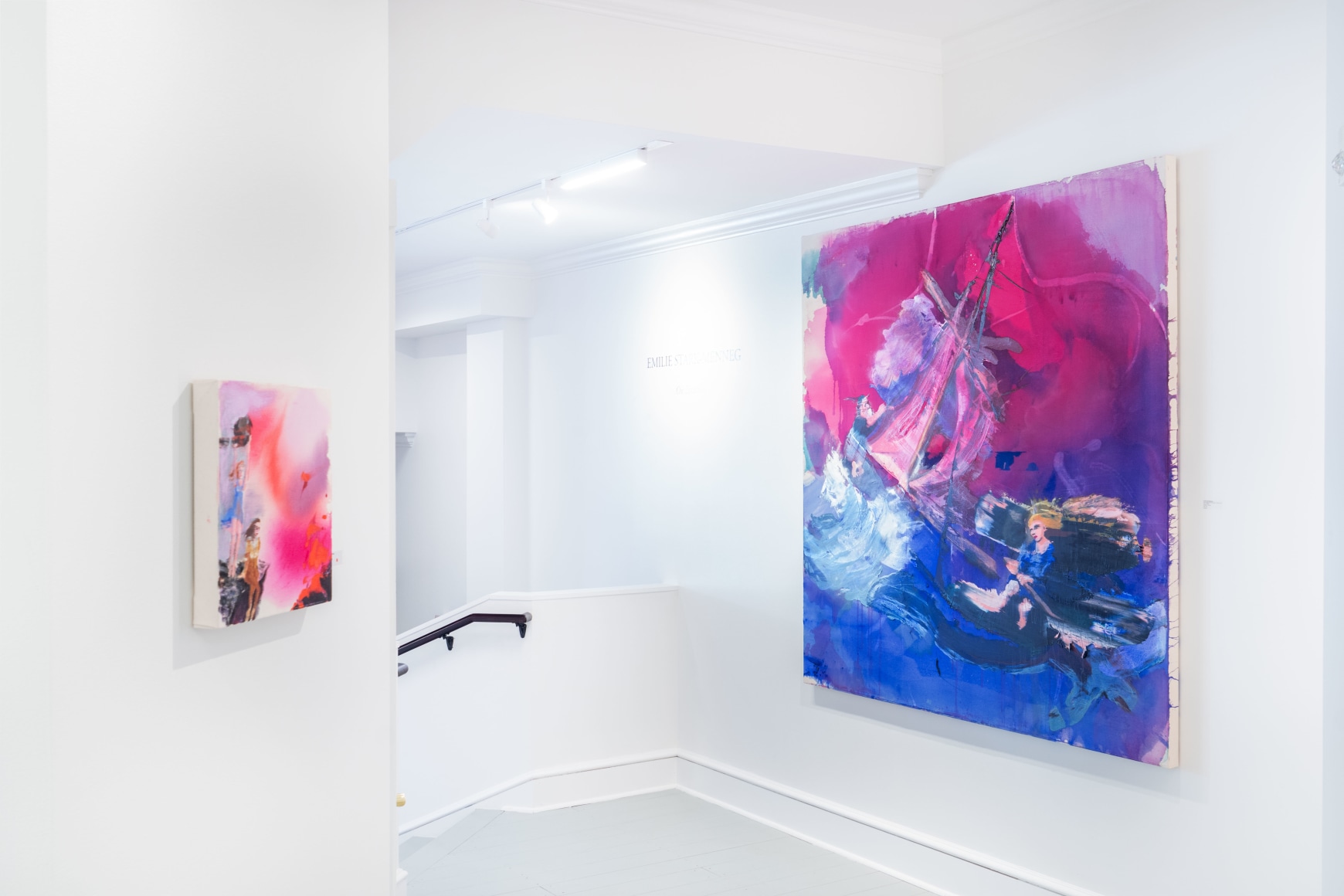 In 2024, Stark-Menneg’s cycle of paintings reimagining the tale of the unicorn was the subject of the exhibition “Thread of Her Scent” at the Farnsworth Art Museum, the inaugural presentation in the museum’s Momentum series, which showcases the work of outstanding next-generation Maine artists. In his review of the exhibition for The Brooklyn Rail, Christopher Crosman writes, “The energetic, irrepressible canvases of Emilie Stark-Menneg are at once familiar and strange. They are eye-catching, seductive, and upon longer, closer looking, become cheerfully subversive. These are restless worlds where momentum cancels color, where surprise counts far more than meaning. Is meaning.”