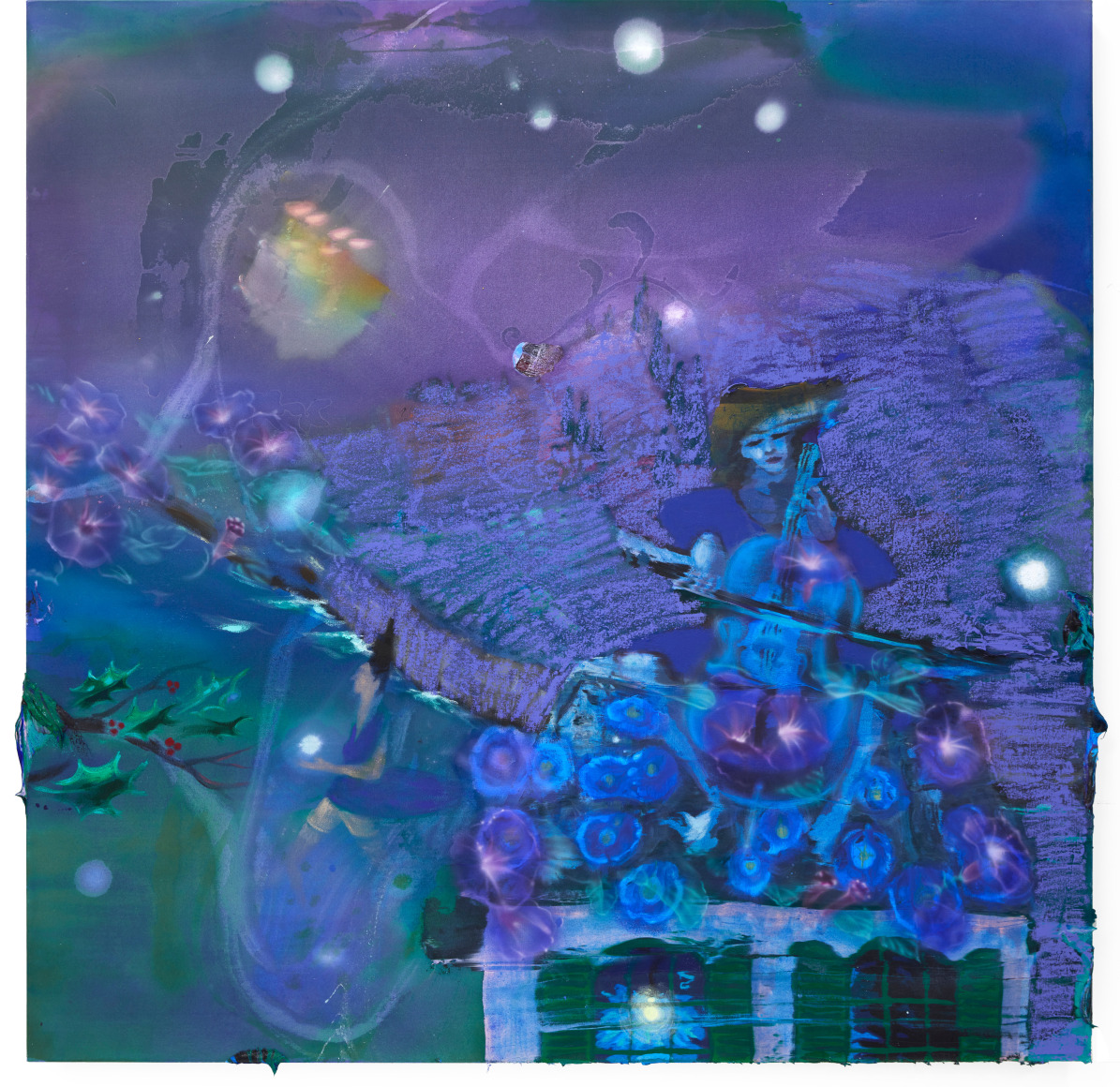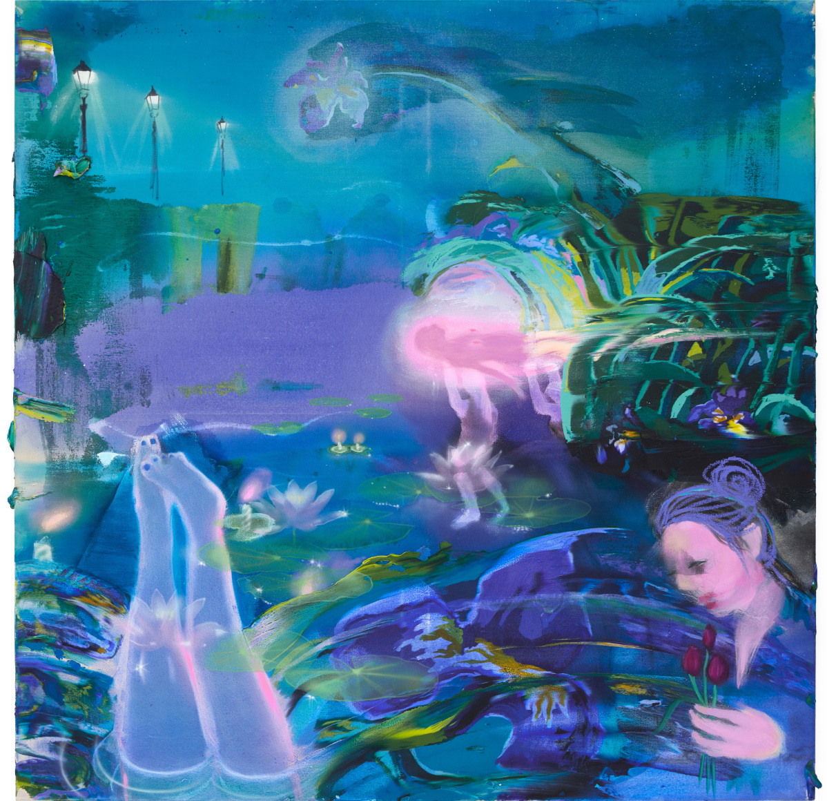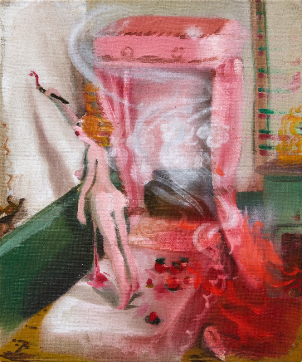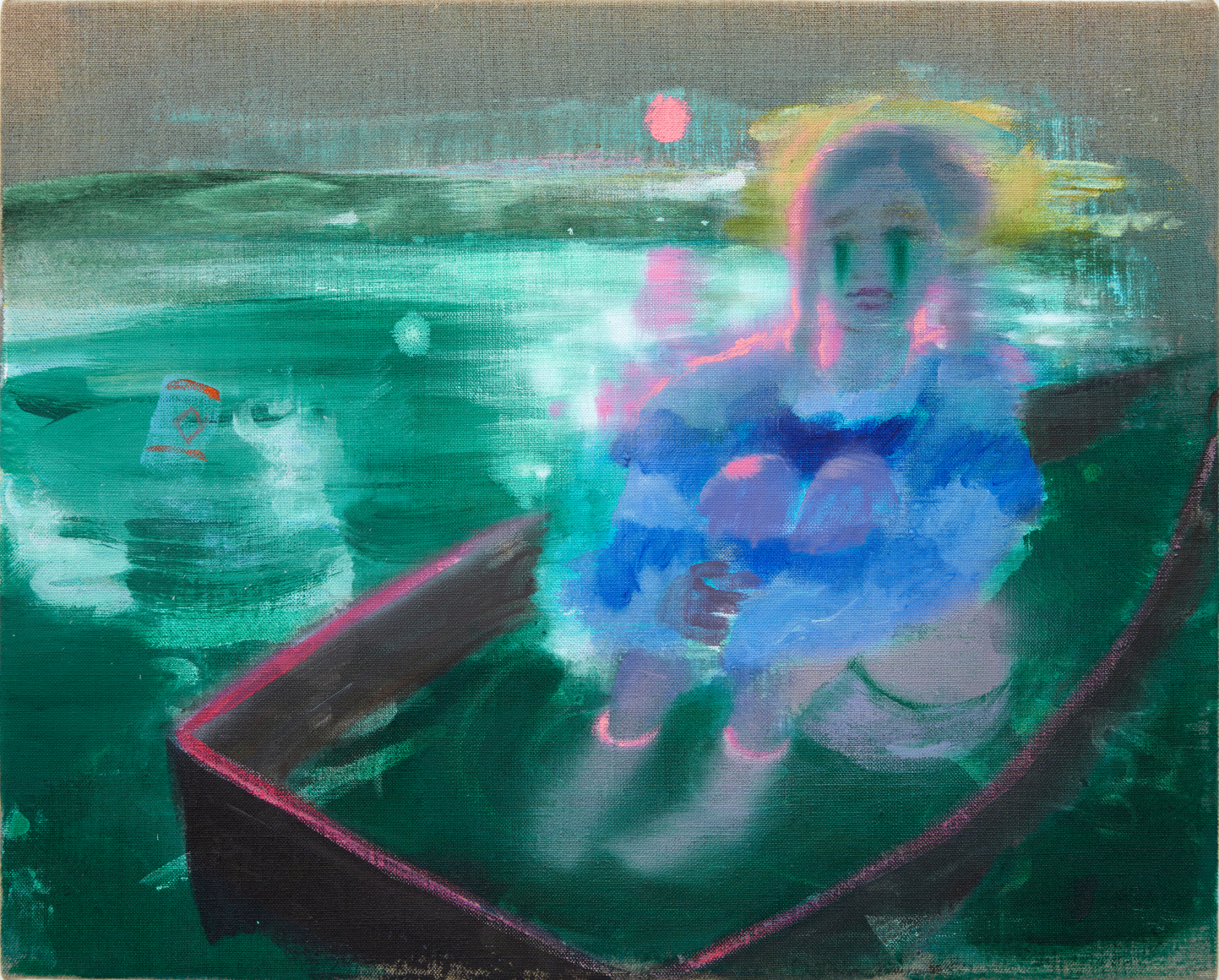 Emilie Stark-Menneg’s exuberant and lushly rendered paintings in On Location are visceral journeys of the imagination, untethered by reality, yet steeped in memory, experience, and her deep knowledge of film, literature, and art history. “The characters in these works,” she says, “are often engaged in states of ecstatic creativity and metamorphosis. They are filmmakers, musicians, sailors, and acrobats. They are foolish and broke, and going all-in on some dangerous vision. It’s a kind of resurrection narrative, that despite all odds, life persists.”