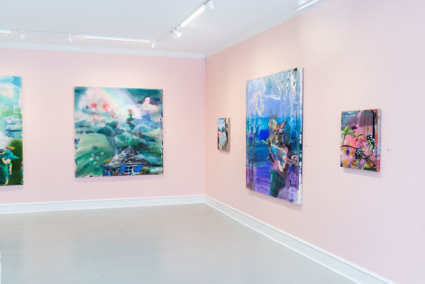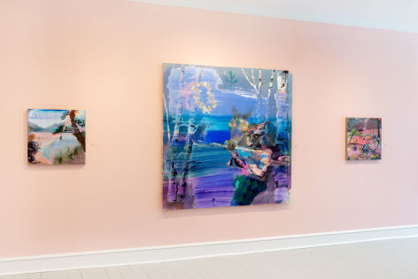 In 2024, Stark-Menneg’s cycle of paintings reimagining the tale of the unicorn was the subject of the exhibition “Thread of Her Scent” at the Farnsworth Art Museum, the inaugural presentation in the museum’s Momentum series, which showcases the work of outstanding next-generation Maine artists. In his review of the exhibition for The Brooklyn Rail, Christopher Crosman writes, “The energetic, irrepressible canvases of Emilie Stark-Menneg are at once familiar and strange. They are eye-catching, seductive, and upon longer, closer looking, become cheerfully subversive. These are restless worlds where momentum cancels color, where surprise counts far more than meaning. Is meaning.”