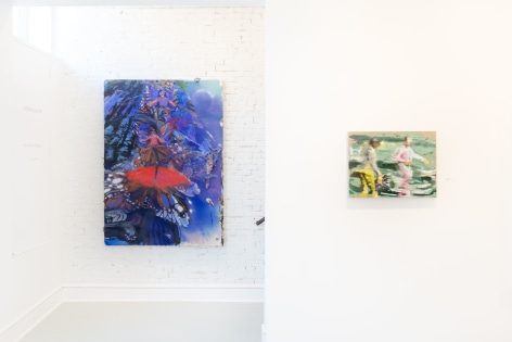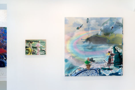 Emilie Stark-Menneg’s exuberant and lushly rendered paintings in On Location are visceral journeys of the imagination, untethered by reality, yet steeped in memory, experience, and her deep knowledge of film, literature, and art history. “The characters in these works,” she says, “are often engaged in states of ecstatic creativity and metamorphosis. They are filmmakers, musicians, sailors, and acrobats. They are foolish and broke, and going all-in on some dangerous vision. It’s a kind of resurrection narrative, that despite all odds, life persists.”
