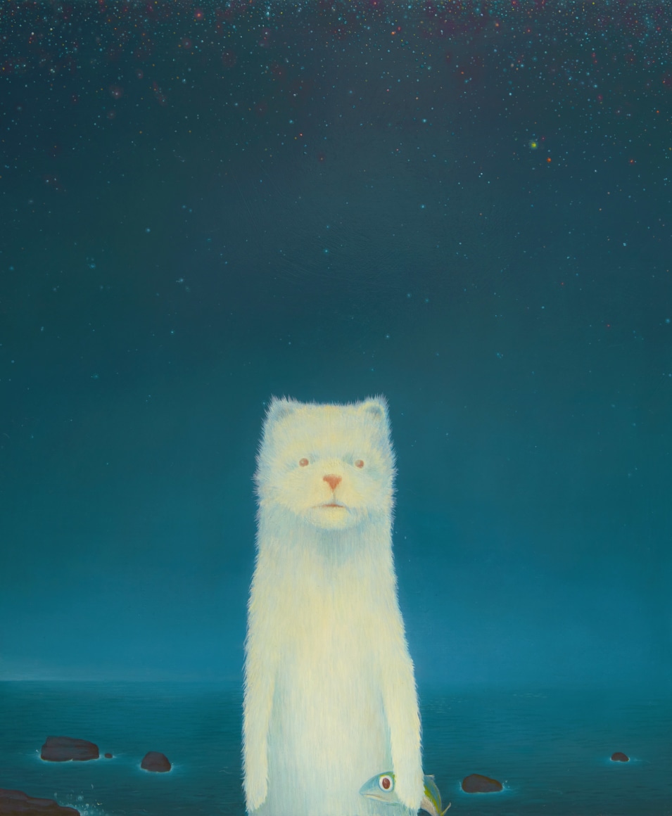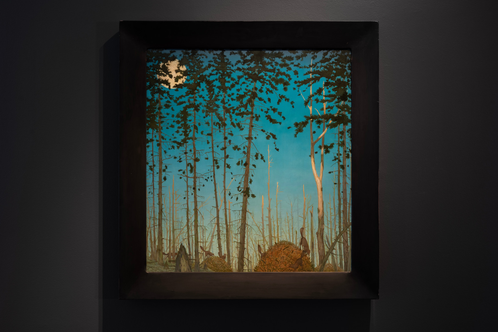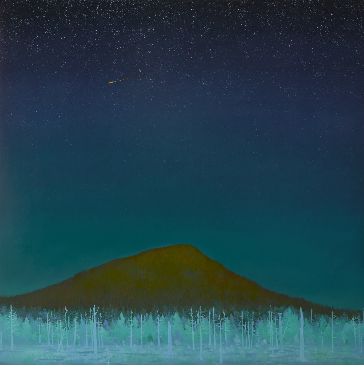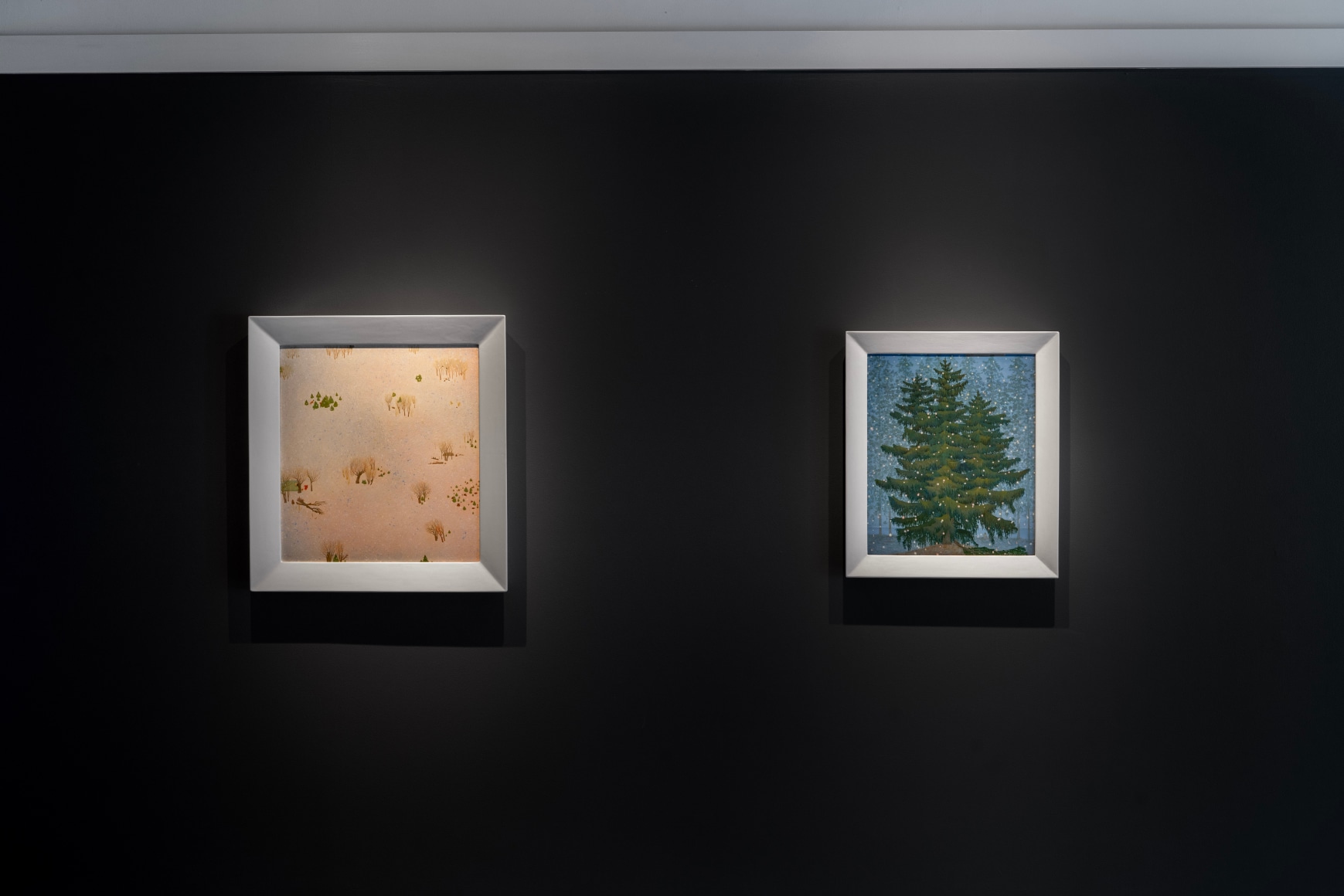 Erik Weisenburger paints the natural world as a place of mystery and beauty. His precisely crafted images resonate with intricate detail and a sense of wonder, reflecting his interests in folk tales, myths, and history. His exquisitely rendered scenes are created using a painting method developed by the early Northern European masters that imparts an internal glow to the finished compositions. After preparing a wood panel with layers of gesso and sanding it smooth, the subject is sketched in, and the image is built up through multiple layers of thinned oil paint and varnish to achieve a satiny, lustrous finish. Weisenburger has said this method "best allows me to explore and interpret the mingling of memories, monuments, permanence, and impermanence." A recent painting, Red Shirt, is a pastel-hued landscape, sparsely populated by bare-limbed trees and tiny conifers. A hush falls over the vast space, the only human presence appearing in the lone cabin with laundry on the line. In Weisenburger’s painted world, nature persists in its timeless splendor.