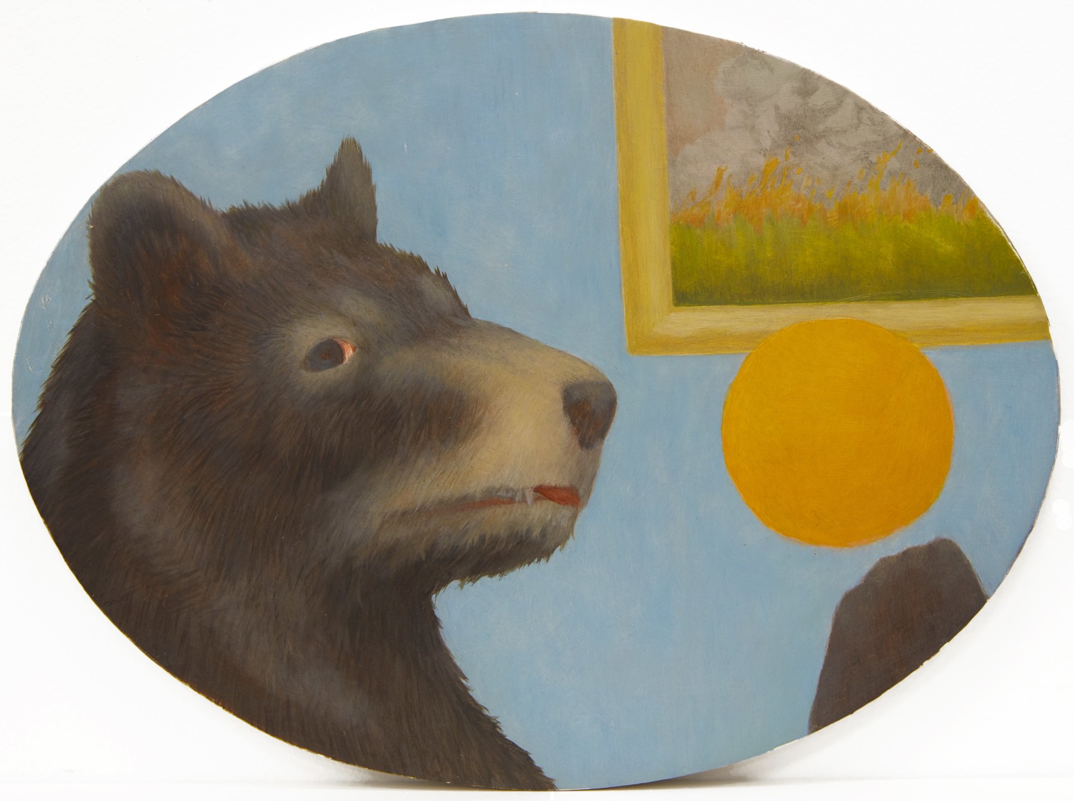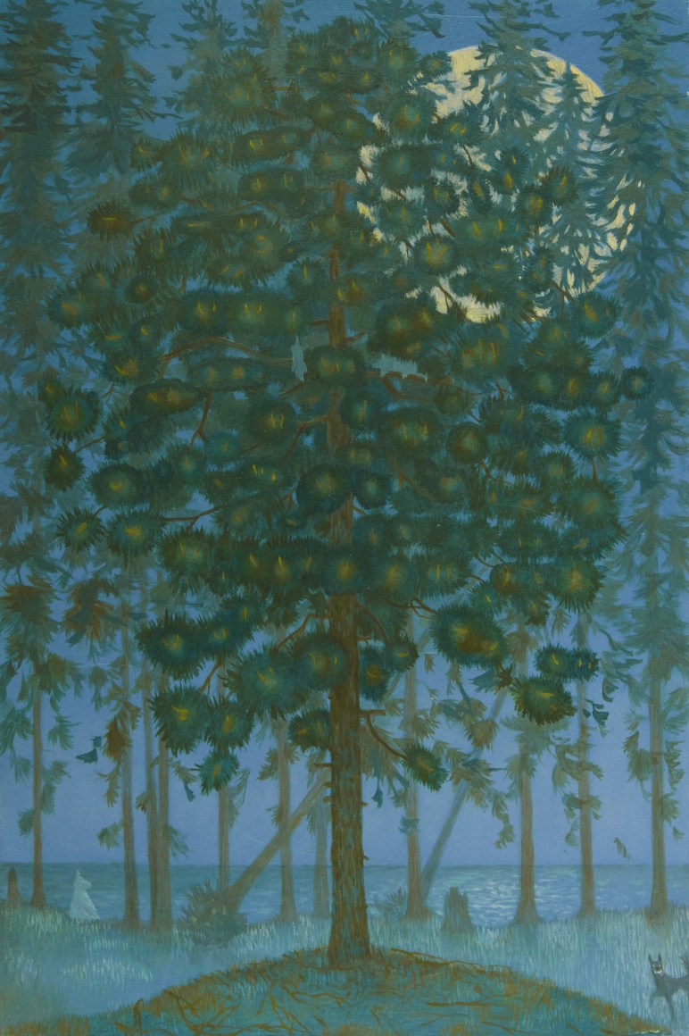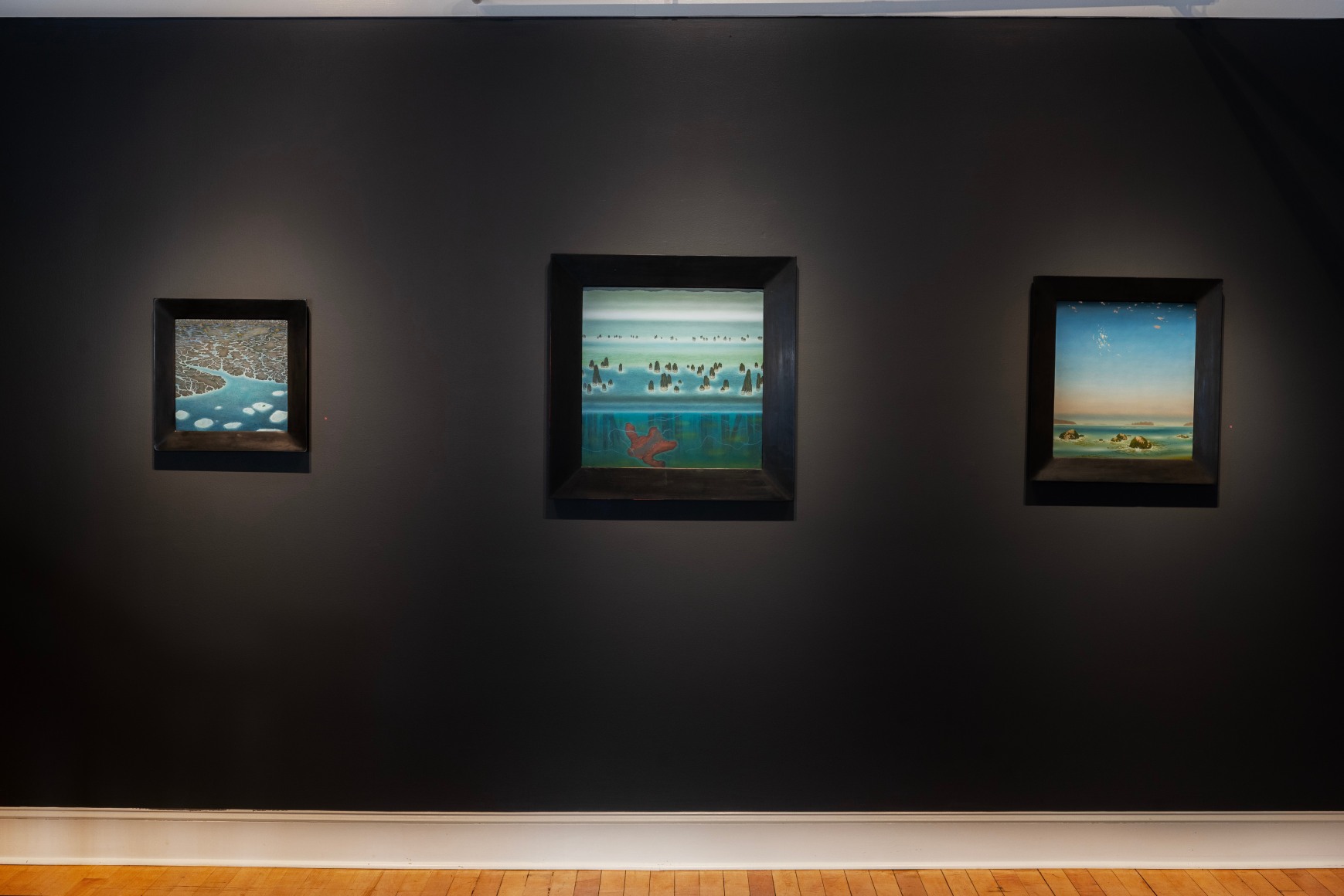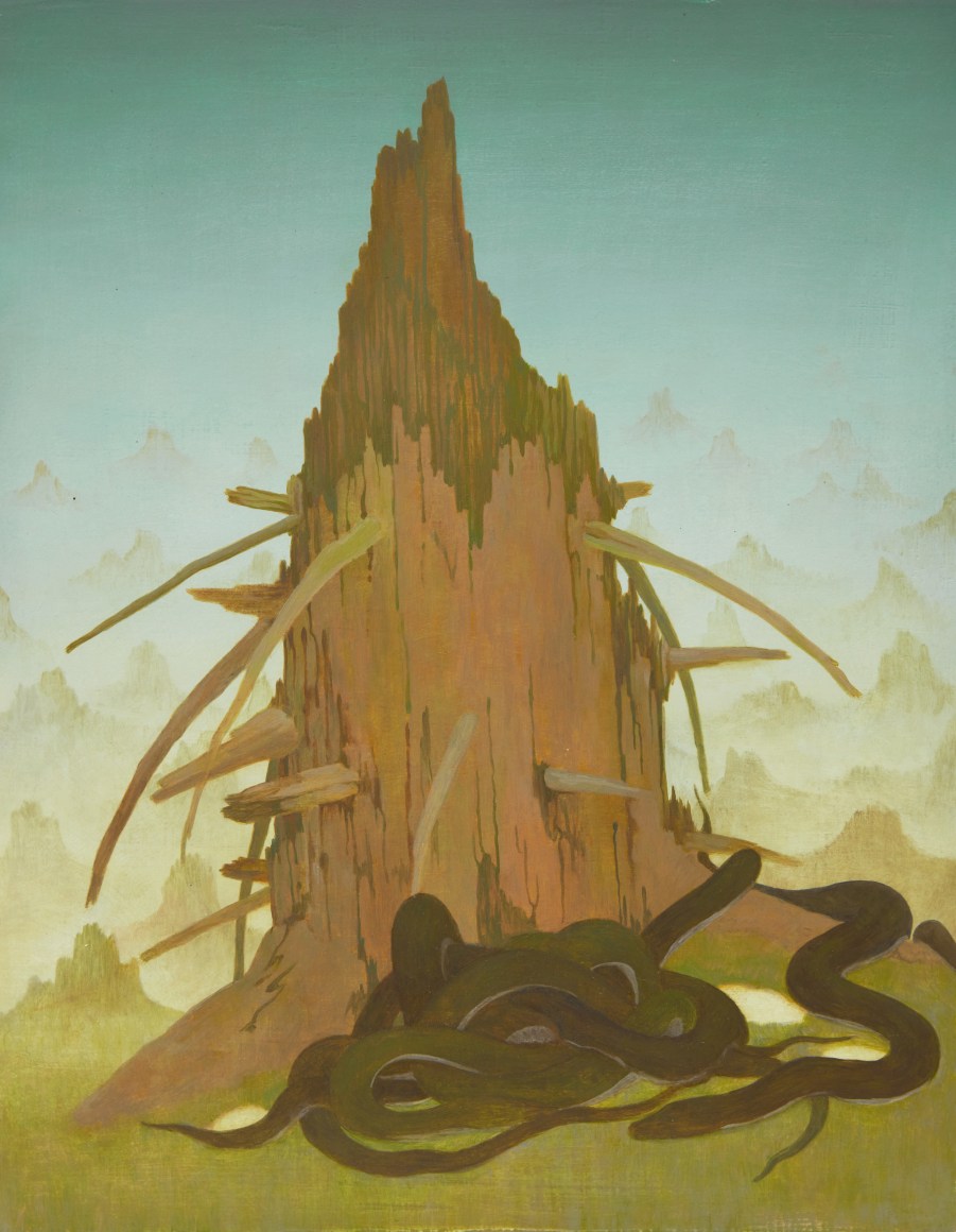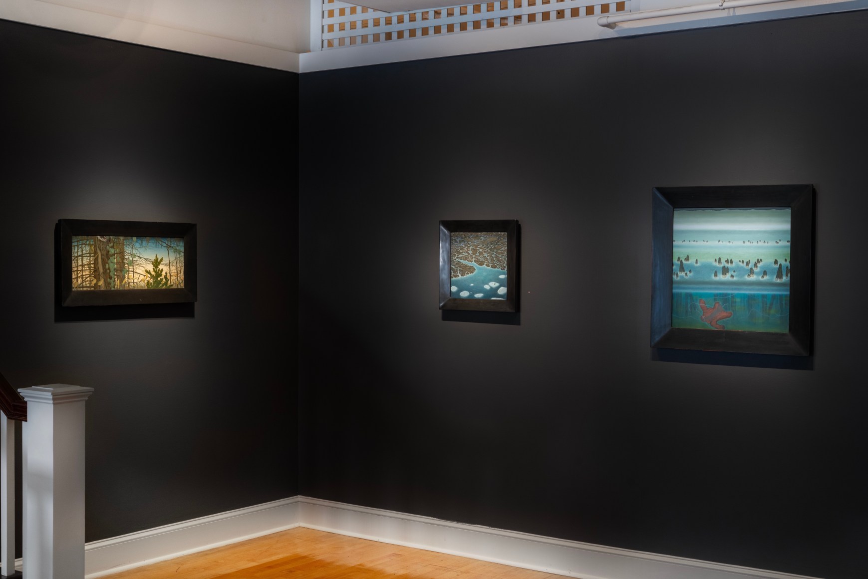 Erik Weisenburger paints the natural world as a place of mystery and beauty. His precisely crafted images resonate with intricate detail and a sense of wonder, reflecting his interests in folk tales, myths, and history. His exquisitely rendered scenes are created using a painting method developed by the early Northern European masters that imparts an internal glow to the finished compositions. After preparing a wood panel with layers of gesso and sanding it smooth, the subject is sketched in, and the image is built up through multiple layers of thinned oil paint and varnish to achieve a satiny, lustrous finish. Weisenburger has said this method "best allows me to explore and interpret the mingling of memories, monuments, permanence, and impermanence." A recent painting, Red Shirt, is a pastel-hued landscape, sparsely populated by bare-limbed trees and tiny conifers. A hush falls over the vast space, the only human presence appearing in the lone cabin with laundry on the line. In Weisenburger’s painted world, nature persists in its timeless splendor.