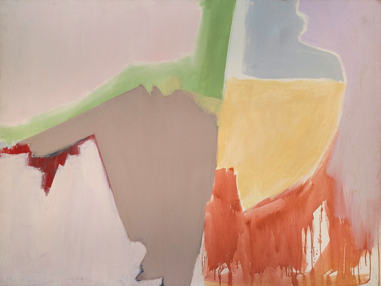 Stephen Pace’s painting from 1953, Untitled (52-50b) shares both form and color qualities with Purcell’s work, Harlequin Spring, done in 1978. They especially share a similar linear technique when moving from one color to the next, each of them using a dry brush technique in areas to layer without completely covering the previous color marks.