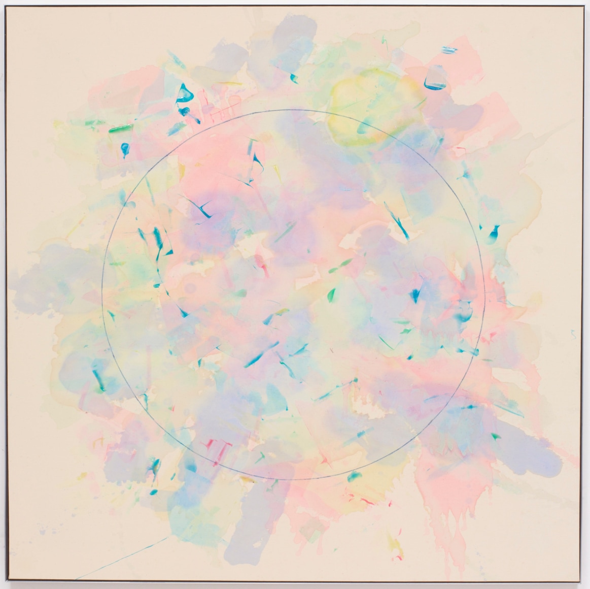 Noland’s, Into the Cool, uses acrylic gel medium to produce three dimensional marks on the canvas. He also treated the canvas from the back as another layer of dimensionality. His works on handmade paper from 2007 especially show his interest at this time in mixed media which provided the addition of texture and layering to his explorations of color relationships.
