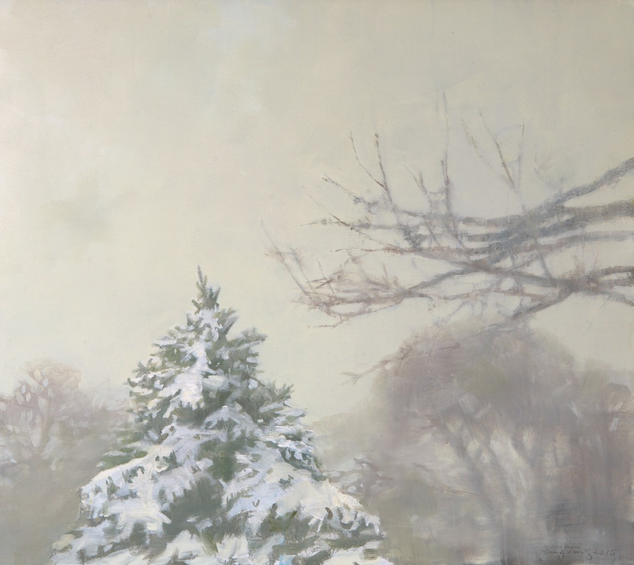 Birch and Spruce in Fog