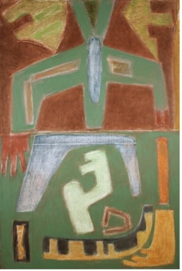 Latex, colored pencil, wood assemblage