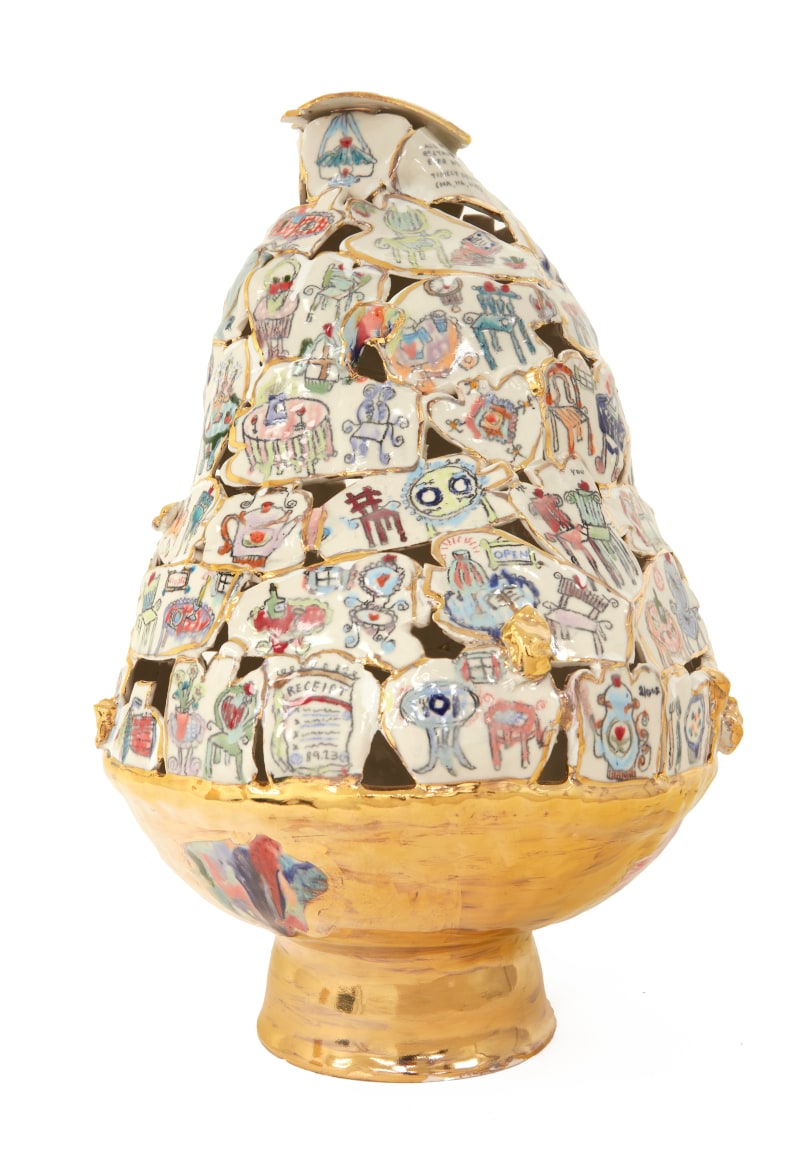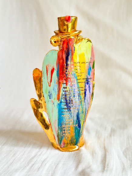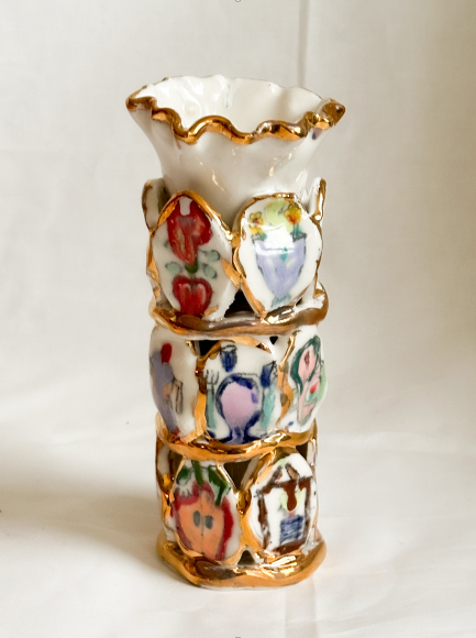Cone 5 Porcelain, 22k Gold luster, Underglaze, Underglaze Pencil, glaze