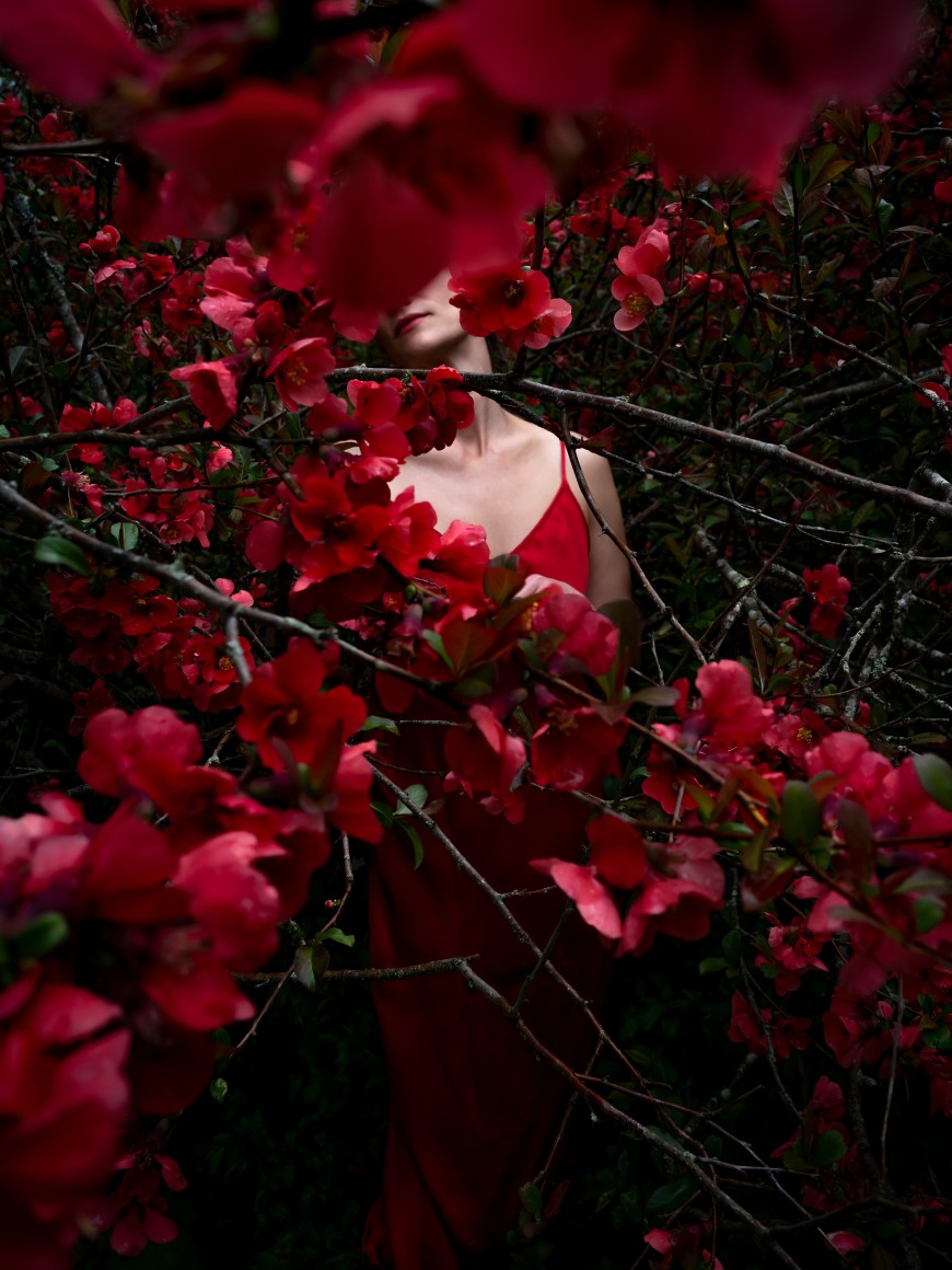 Hawthorn Blossoms and Camelias, (My Sister's Garden), 2022