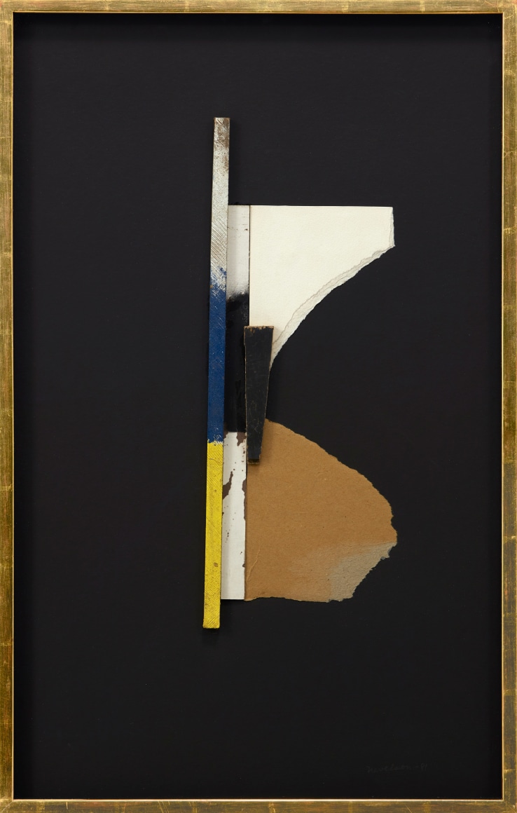 Wood, paint, card board, and paper mounted on 1/4 in. Luan plywood