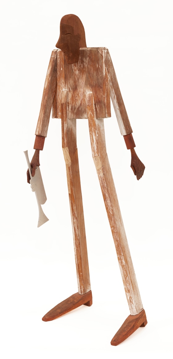 Carved wood with paint and aluminum