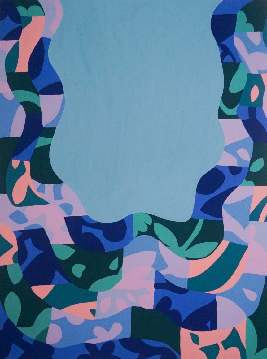 Rachel Gloria Adams is a multi-disciplinary artist who works across mediums, creating paintings, murals, quilts, and graphic and textile designs. She brings a passion for dynamic color combinations and bold, clear patterns to all her work. The striking abstract compositions of her recent pieced and sewn textile works honor the celebrated quilts of the women of Gee's Bend, Alabama. For the artist, “they serve as a way of piecing together memories within an heirloom framework.” Her latest paintings draw inspiration from the Maine landscape, combining the beauty of plant forms with the color and movement of the ocean.