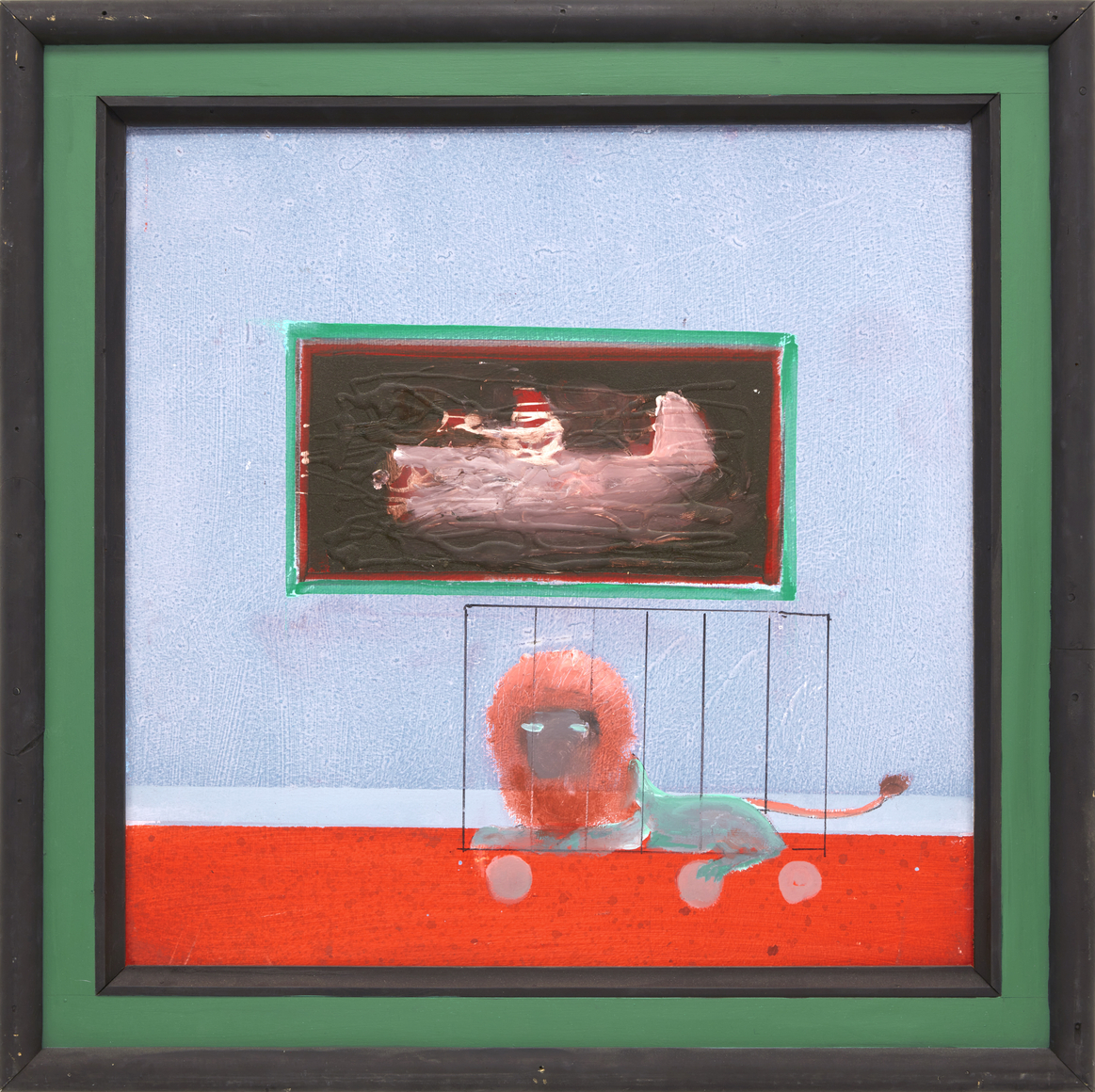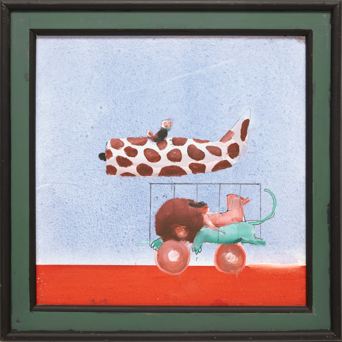 Theatrical and cinematic in scope, each composition, ranging in scale from 16 inches square to more than six by eight feet, functions as a stage, "a place for something to occur...little pictorial events, little plays." References to art history, popular culture, Jazz, sports, comics, and his war experiences abound. Stalag Luft III, the prisoner-of-war camp that held captured Western Allied air force personnel, and the subject of the film The Great Escape, makes repeated appearances. As does the artist's snub-nosed P47 Thunderbolt, both in its "serious" form, and later, "before I knew it, it was a toy...zipping along a few feet above the ground."