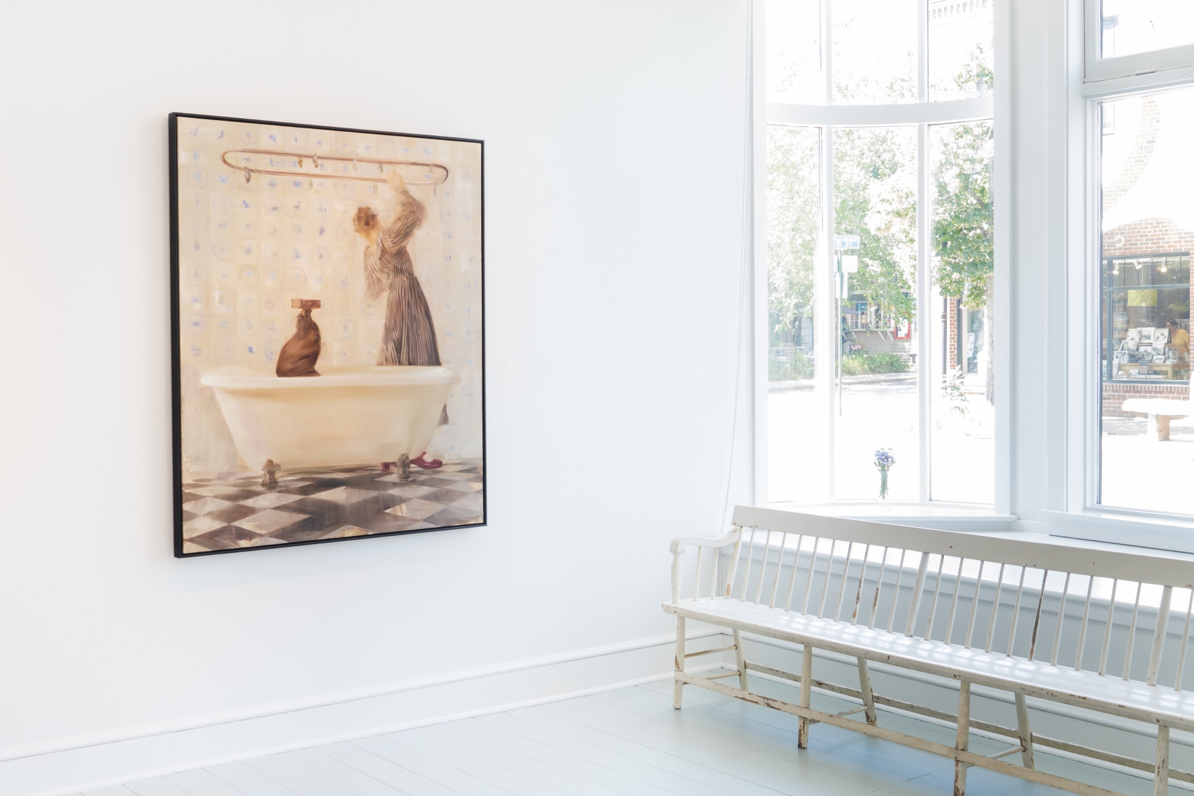 Widely admired and respected for her brilliantly crafted paintings that blend history, fact and fantasy, McRae Morton grew up in rural Lancaster County, Pennsylvania, where she began painting at an early age. During and after high school, she trained with the noted educator Myron Barnstone (1933-2016), who taught her the virtues of classical design, technical drafting, and harmonic color theory. She furthered her studies at the Pennsylvania Academy of the Fine Arts and the University of Pennsylvania, earning a summer residency at the prestigious Skowhegan School of Painting and Sculpture. The dream of living in Europe brought her to Cologne, Germany, where she lived for ten years, studying for a time in Rome, and with the celebrated figurative painter Odd Nerdrum, in Norway.