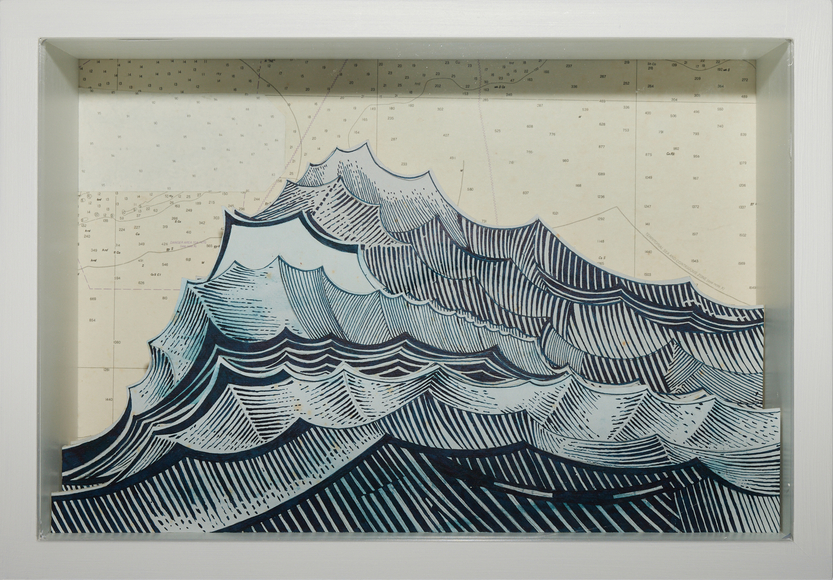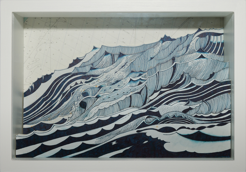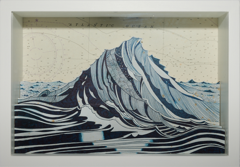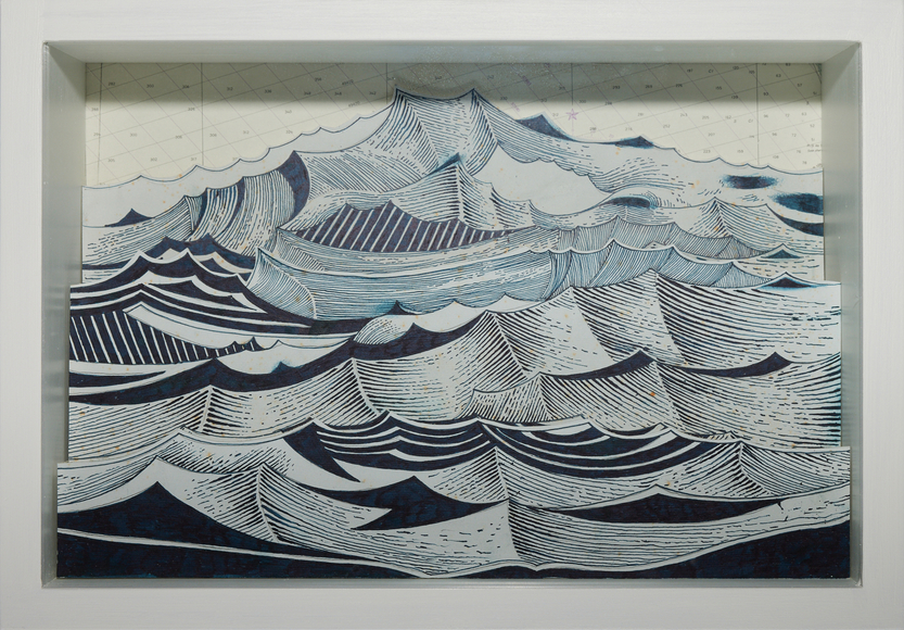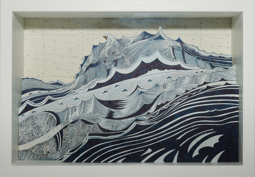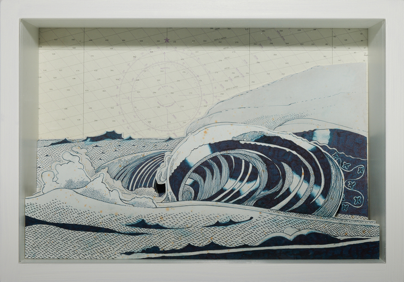 Ink on paper, mounted to wood, glass, wood box