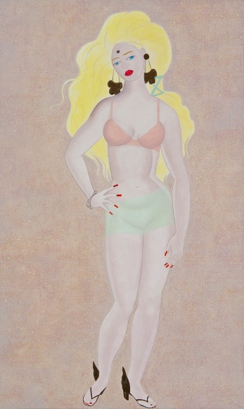 Oil on panel with glitter paint