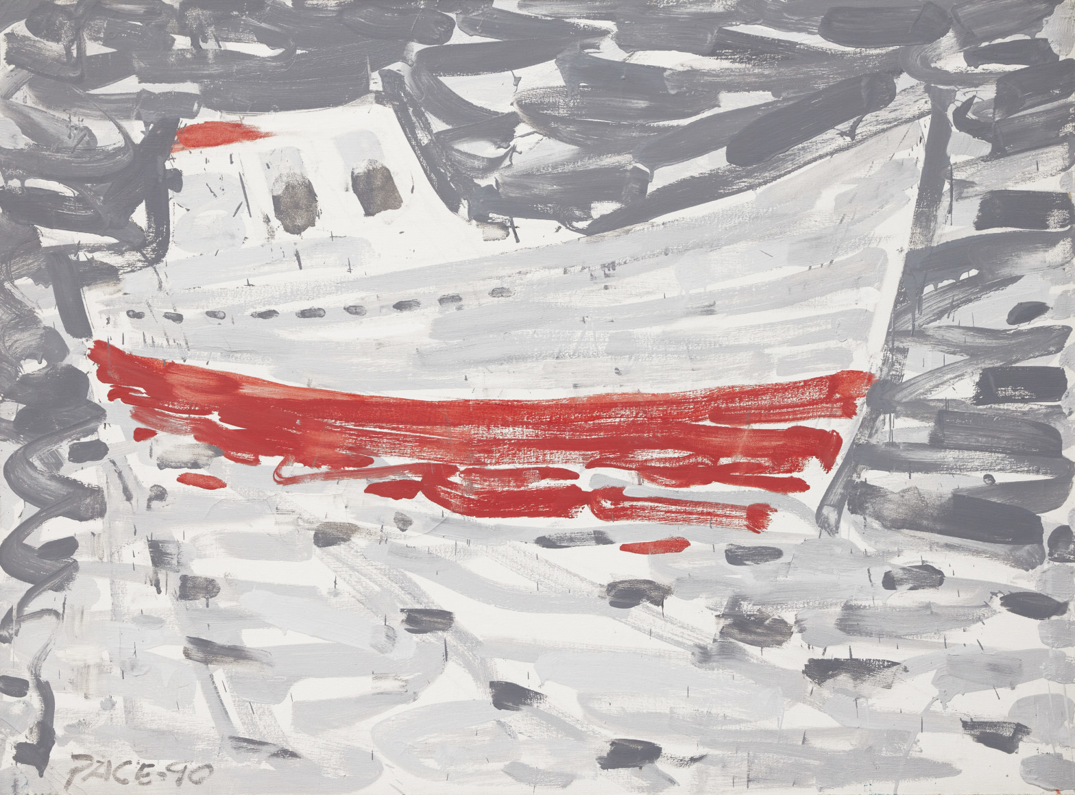 Born in Charleston, Missouri, Stephen Pace grew up in Indiana, and initiated his formal art training by studying drawing and watercolor methods with W.P.A. artist Robert Lahr. During World War II, he served in England and France, honing his skills by painting views of local scenery. Pace enrolled at the Institute of Fine Art in San Miguel Allende, Mexico, with funding provided by the G.I. Bill. After a year south of the border, during which time met and befriended the painter Milton Avery, he went to New York, where he attended the Art Students League (1948-49). After time in Florence and Paris, Pace resumed his studies in New York, attending classes at Hans Hofmann’s school. Hofmann’s teachings–especially his practice of creating volume through dynamic planes of color– helped inspire the direct and vigorous Abstract Expressionist style Stephen Pace employed during the 1950s, with jagged forms and pulsating energy.