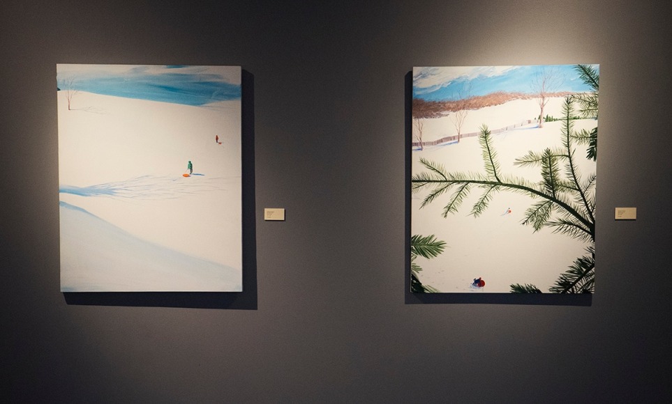 Whiteout is an exhibition of works that explore the shifting perspectives experienced during winter. When the landscape is coated in snow, there is a lack of reference points for the environment around us. These reduced visual cues and muted palettes immerse us in a world slightly removed from familiarity, creating a new frame for viewing our surroundings in its starkness. Snow dictates our activities and behavior, varying due to the elements. The works included in this exhibition approach this environment with keen eyes, focusing on the stark contrasts that winter brings.
