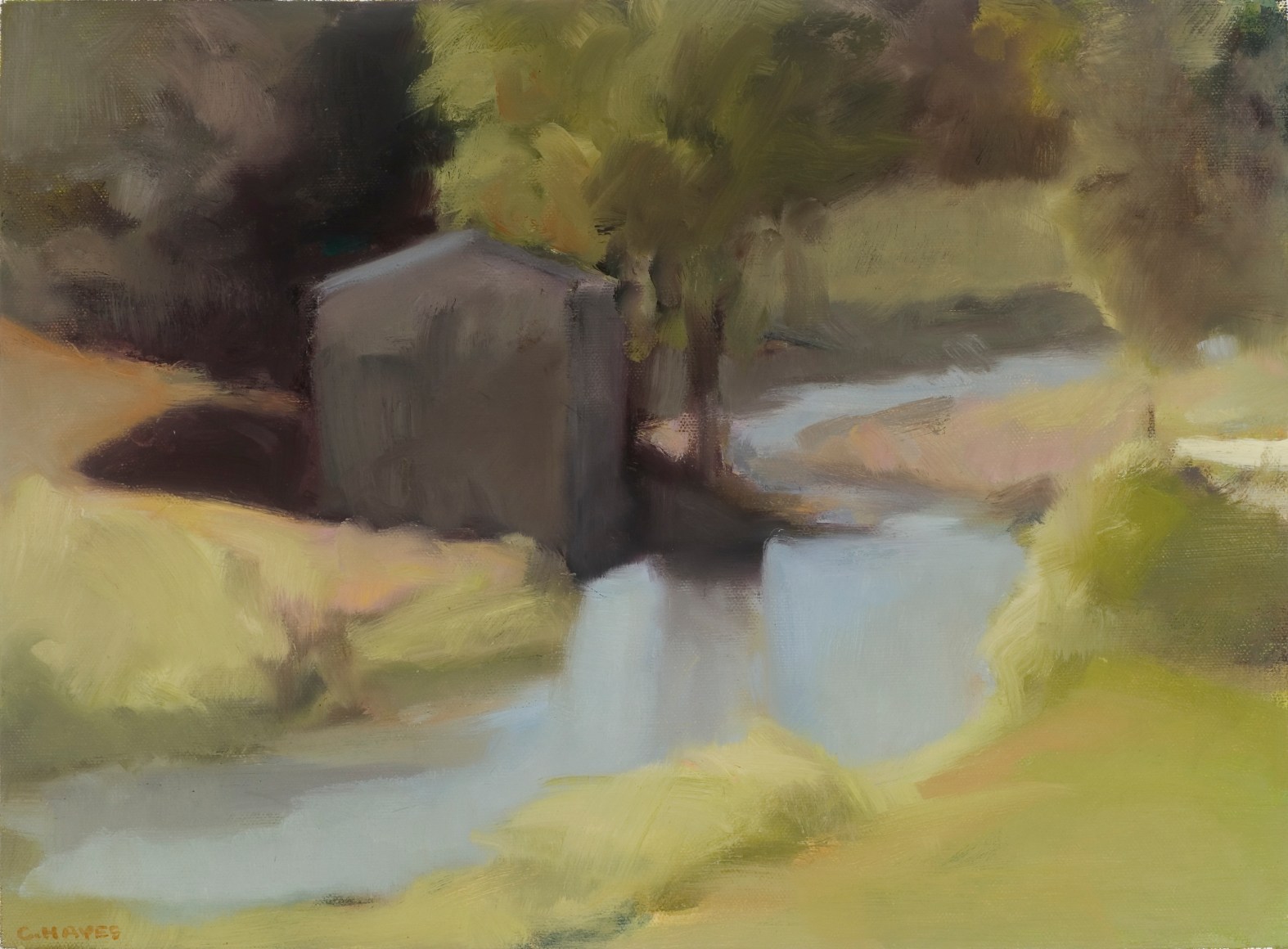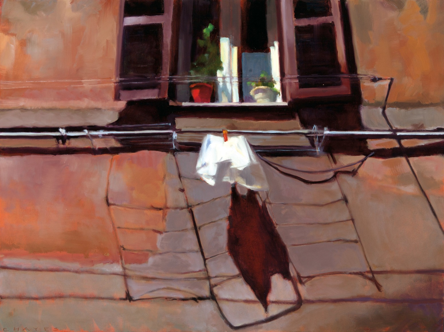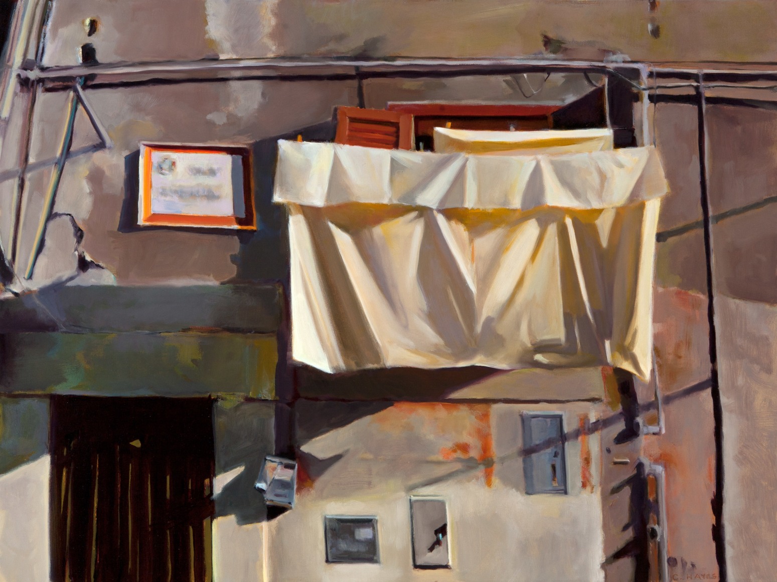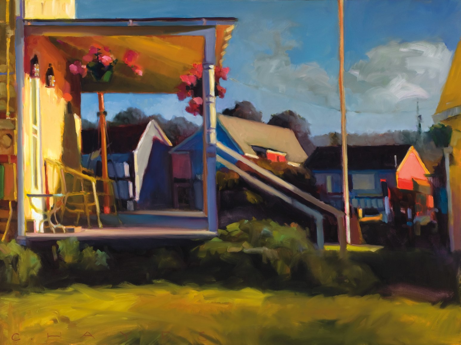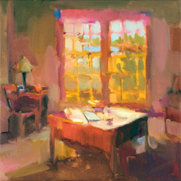 Connie Hayes is widely admired and regarded for her color-rich paintings emphasizing light and shadow and the underlying geometry forms within her harmonious compositions. Her subjects range from boats and water to studies of interiors and still lives. For over twenty-five years, she has returned to paint on Vinalhaven Island, the source of her most recent work. "I have had a crush on Vinalhaven since 1996," she says. "Vinalhaven's landmarks, traditions, and landscapes remain reassuringly unchanged." The light, shapes, and colors of the island's environment, its working waterfront, and the village populated with Mansard roof buildings are an endless font of inspiration for her. "Those sights and sensations animate my memory as I paint and draw Vinalhaven back in my mainland studio."