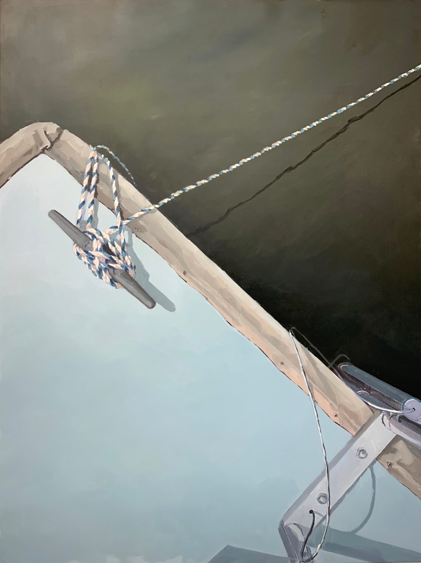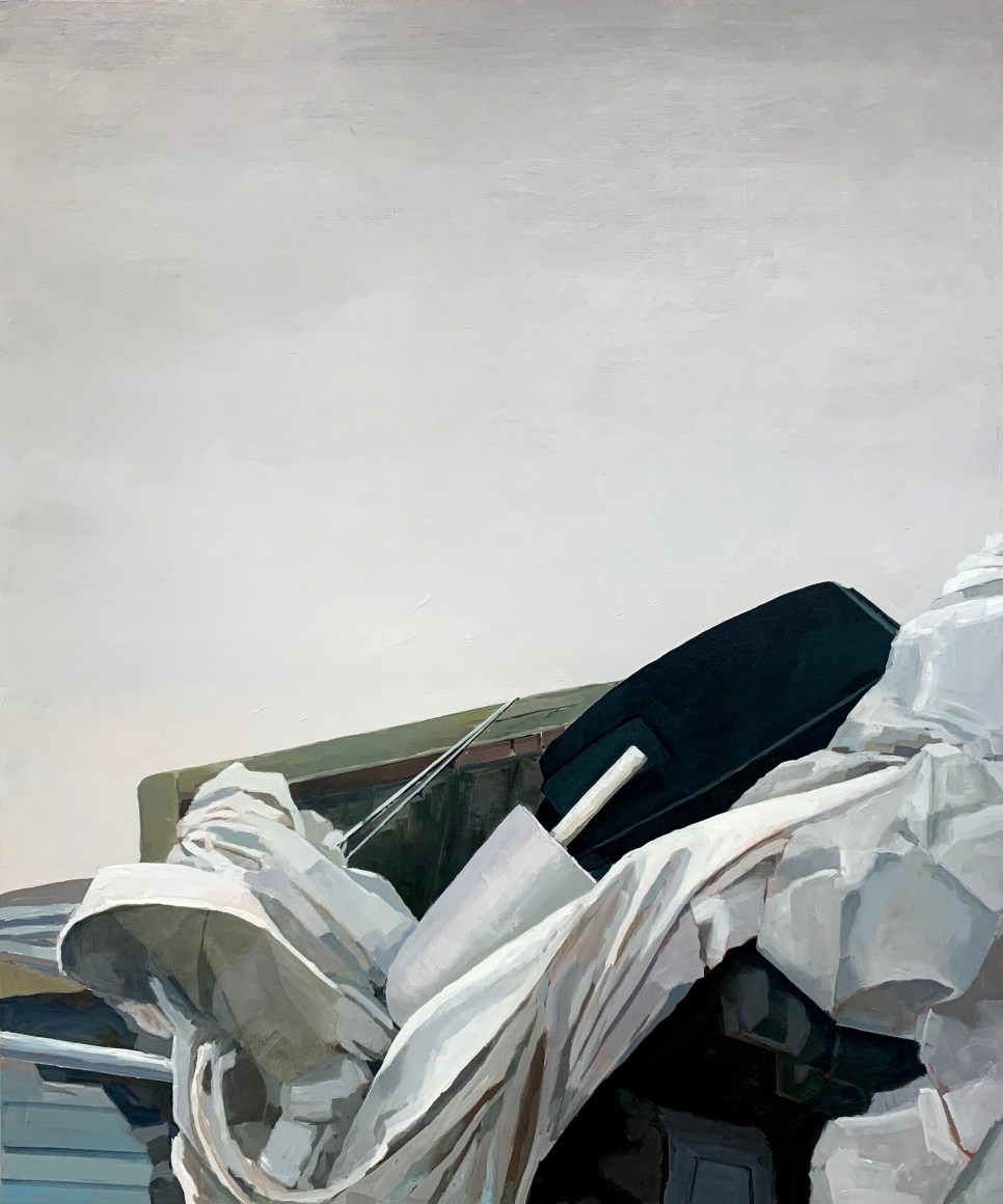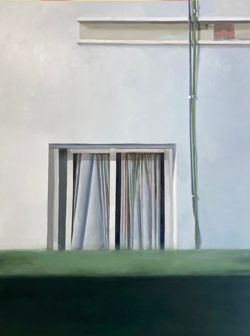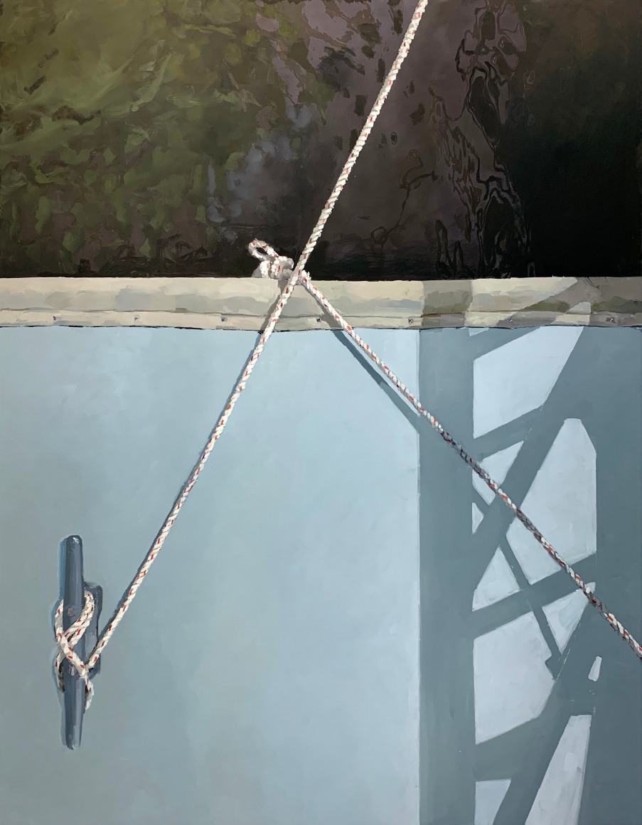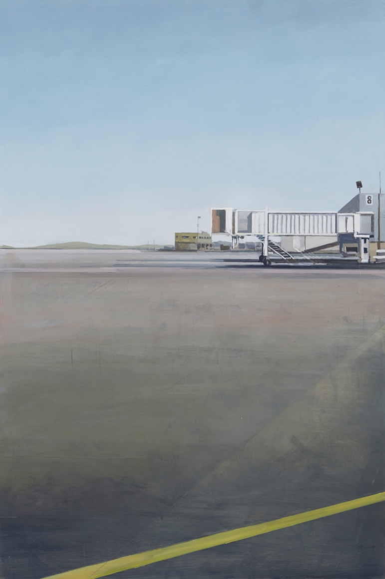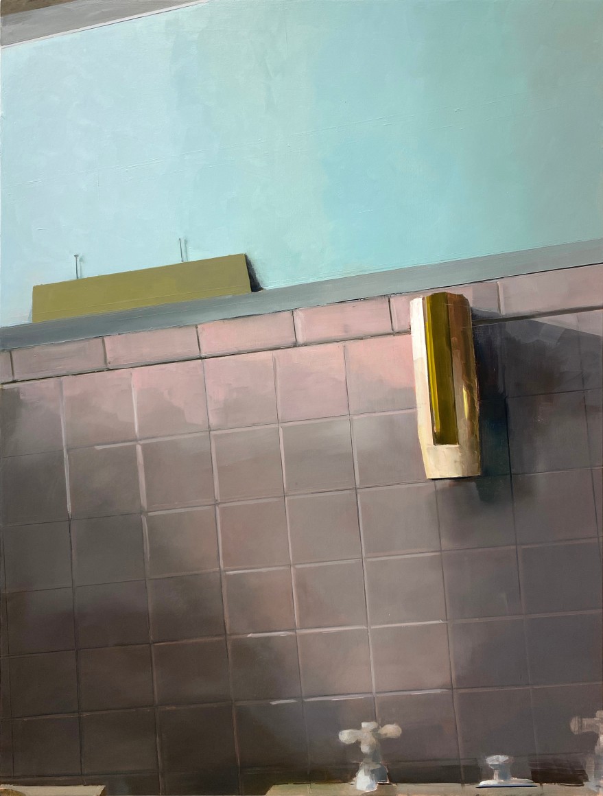 Brillhart can paint. Her scenes are not only accurate, but also precise, and she can handle the brush and knife with a rare ability, which she uses to excellent effect. These scenes will strike many (at first, at least) as being as cold as the aluminum on which she paints. The sense of remove, however, dissolves as we begin to see the hyper-realistic images as paintings rather than photographically observed scenes. It’s easy to miss Brillhart’s marks because they play their representational parts so well, but with a closer look (I mean this literally – when you get close to the canvas to observe the surface), her mark making appears as nothing short of masterly – and it is handled to brilliant effect.