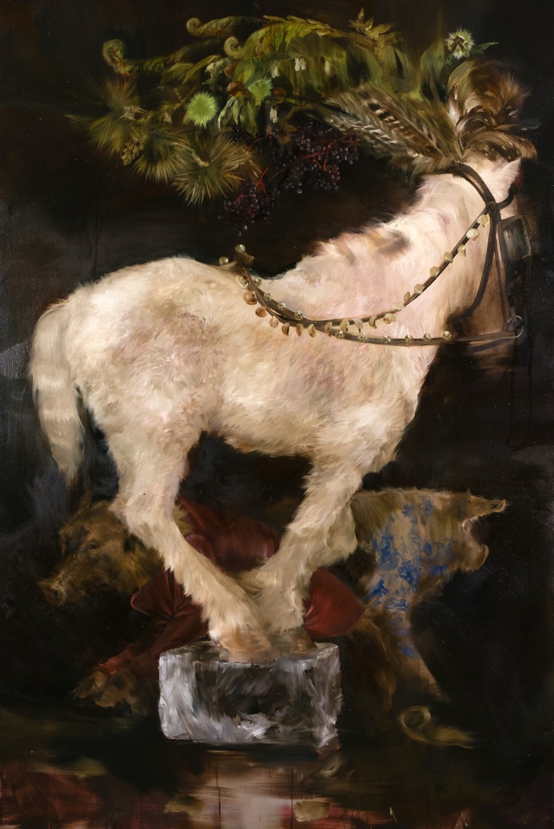 Sarah McRae Morton paints compelling, virtuoso narratives that appear as dreams or visions from another life, all opulently rendered with her skilled, animated brush. To the artist, they are “…constellations of the flickering worlds of the past, spinning thread between recorded history, family lore, mythology, and the natural world.” Morton began painting at an early age in a studio above the horse stalls at her family’s farm in rural Pennsylvania. During and after high school, she trained with the noted artist and educator Myron Barnstone, who taught her the virtues of classical design, technical drafting, harmonic color theory, and hard work. She attended the Pennsylvania Academy of the Fine Arts and the University of Pennsylvania. And furthered her studies with the celebrated figurative painter Odd Nerdrum in Norway, and in Rome, where an encounter with Carravaggio’s Conversion on the Way to Damascus reminded her "... wherever I went, my compass pointed homeward." Her deep knowledge of art history and literature informs her subjects. Rigorously composed and brilliantly executed, with “fever-dream intensity” and a rich, warm palette, Morton’s wildly romantic paintings flirt with the past while dancing with the present. As William Faulkner wrote, “The past is never dead. It’s not even past.”