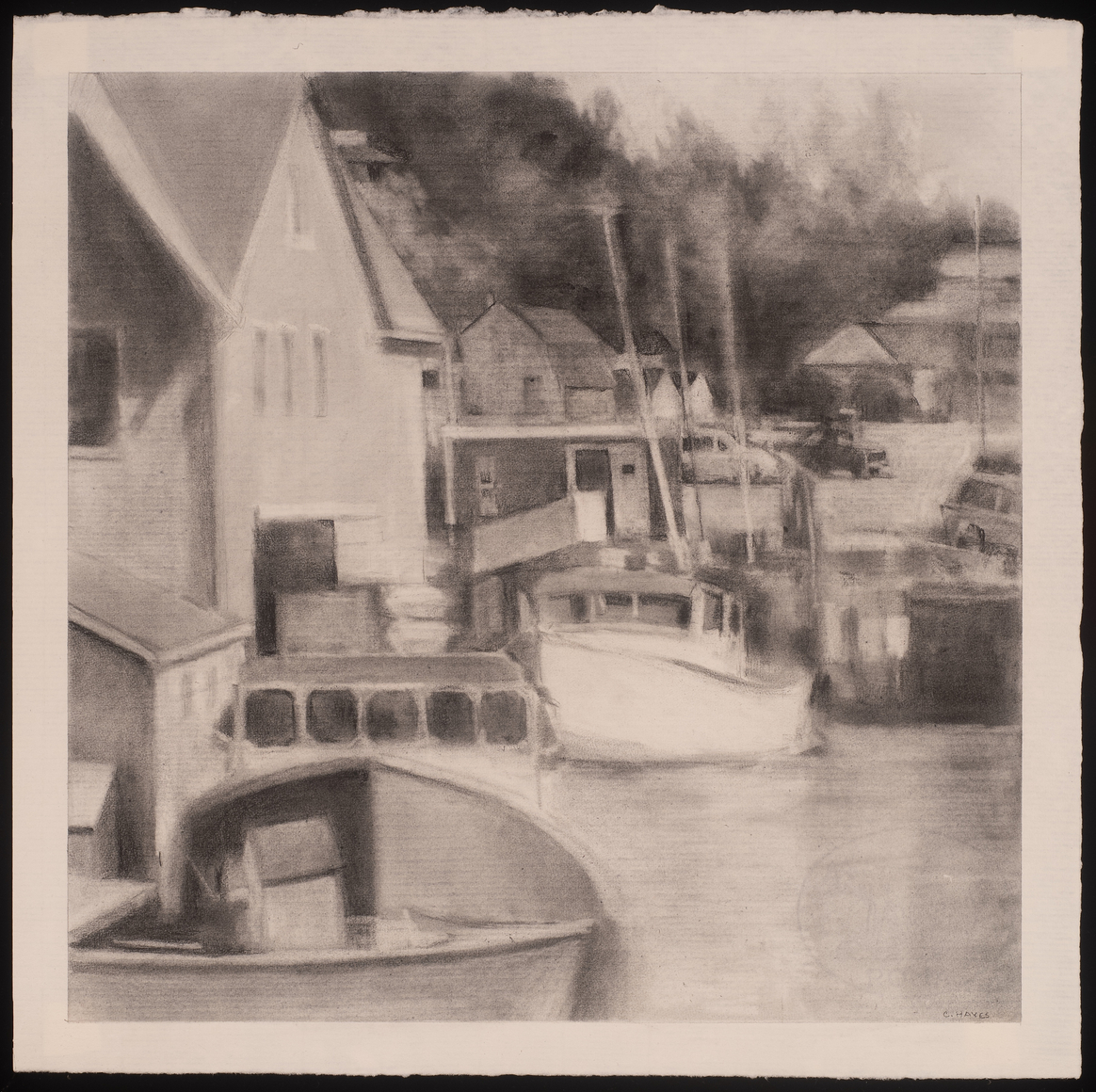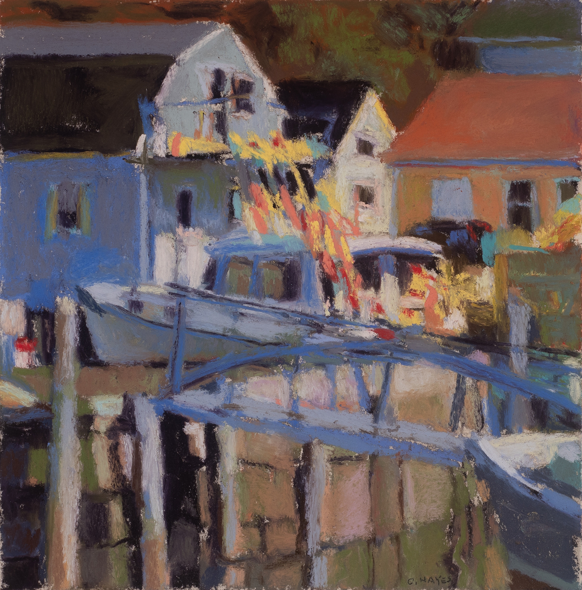 Widely admired for her color-rich paintings, Connie Hayes has returned to paint on Vinalhaven Island for over twenty-five years. "I have had a crush on Vinalhaven since 1996," she says. "Vinalhaven's landmarks, traditions, and landscapes remain reassuringly unchanged." The light, shapes, and colors of the island environment, its working waterfront, and the village populated with Mansard roof buildings are an endless source of inspiration to Hayes. "Those sights and sensations animate my memory as I paint and draw Vinalhaven back in my mainland studio," she says. Included in the exhibition are luminous, large-scale oil on canvas paintings, exquisitely rendered small-scale pastel on paper works, and a group of tonally atmospheric graphite drawings.
