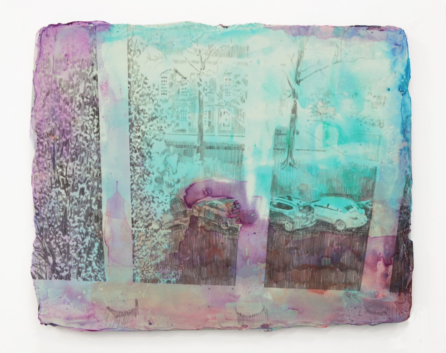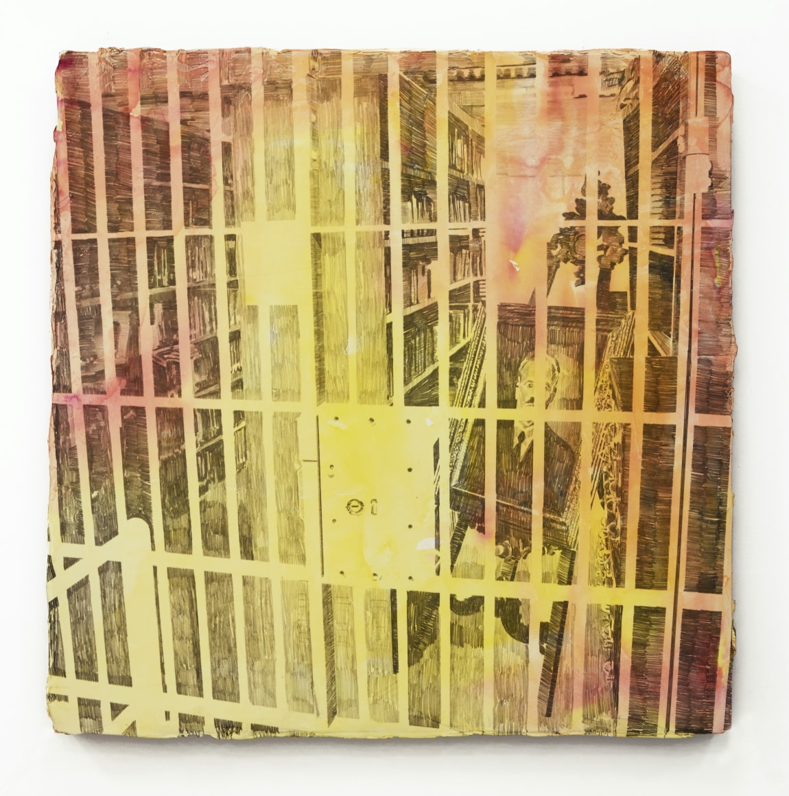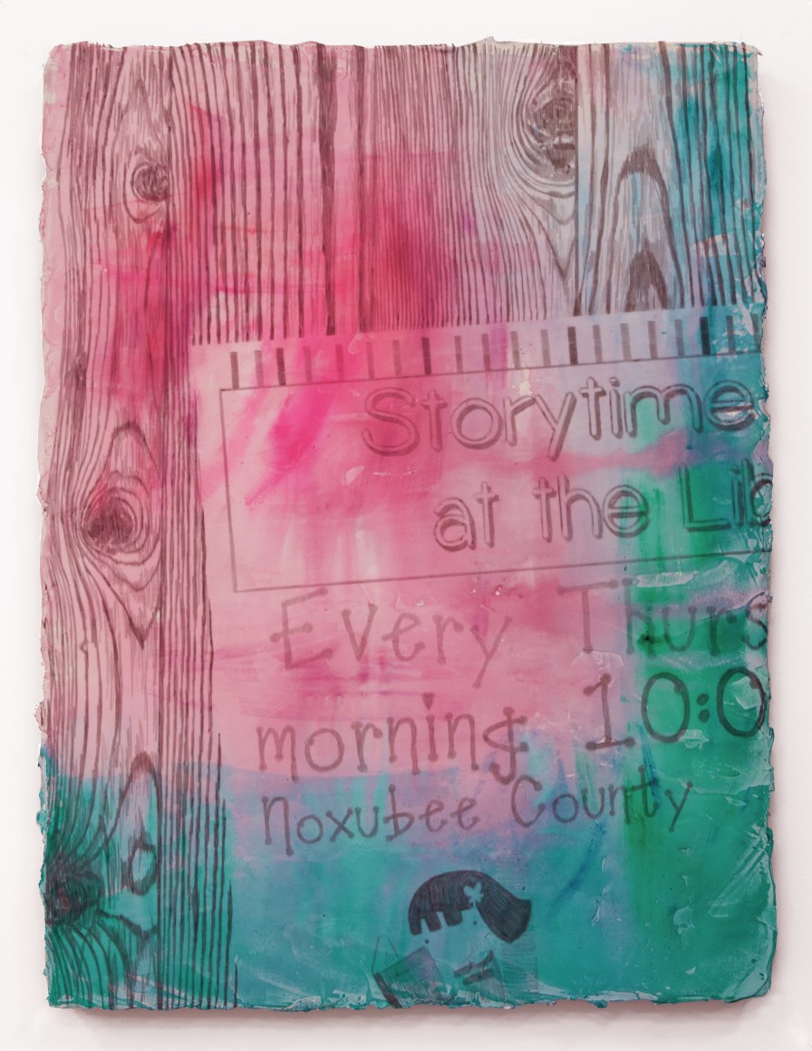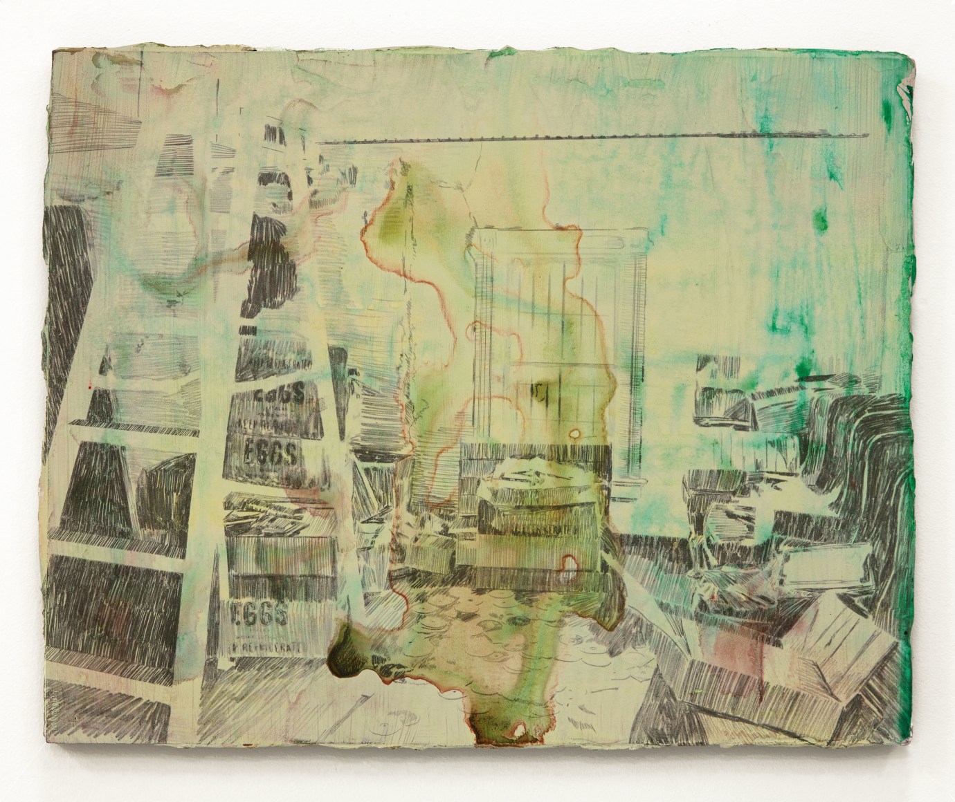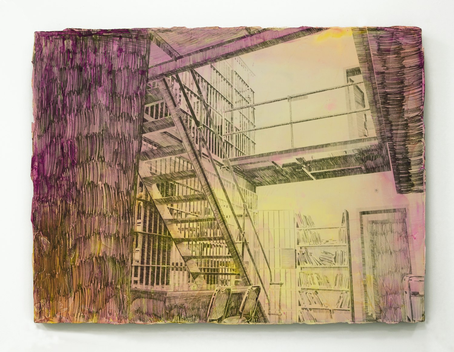 These drawings spring from this unusual place, and my unusual relationship to it. Had my grandfather not been a racial terror refugee, I may have grown up in this place doing my homework, reading books, seeing magicians, making friends, all under the hook. The surfaces, damaged and referencing sheetrock and architectural material, create a platform to learn: meticulous drawing with no more material than a schoolkid might have on hand: watercolor and graphite.