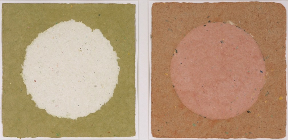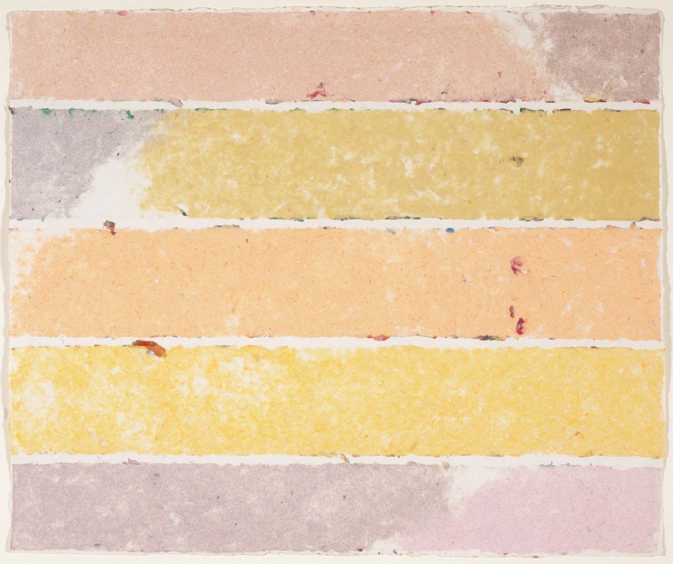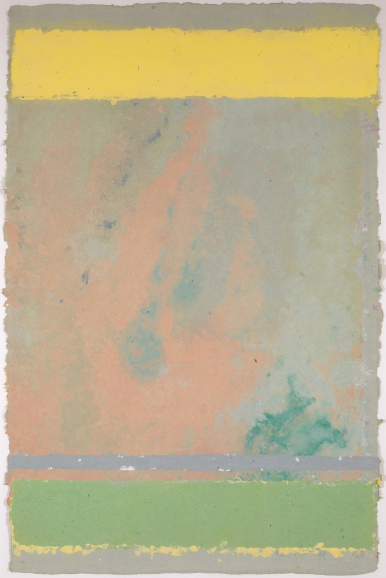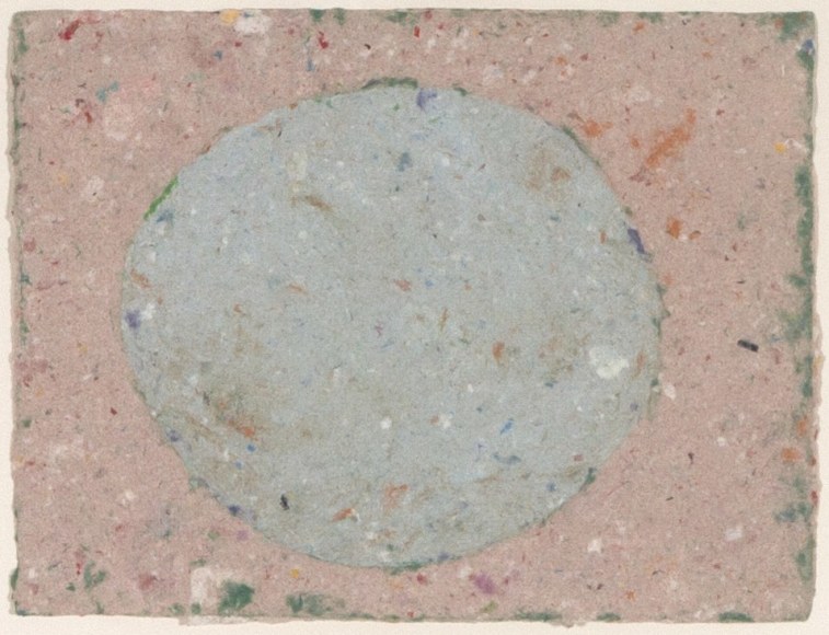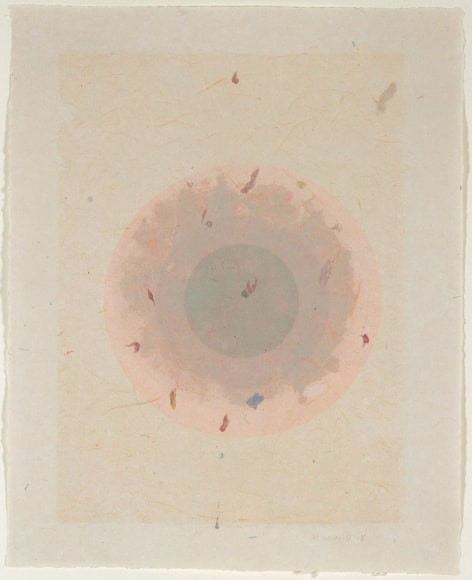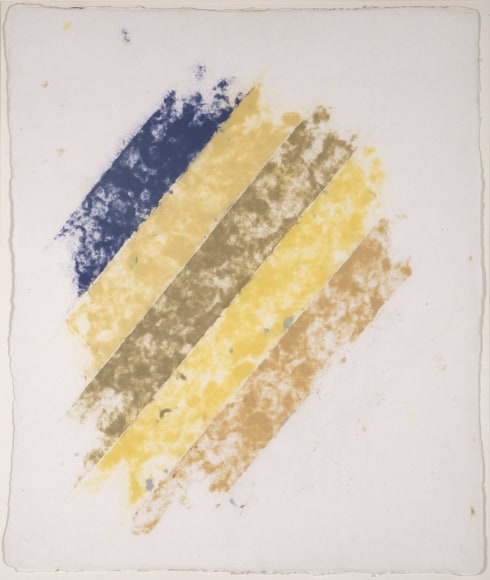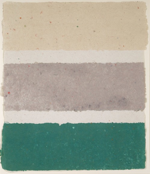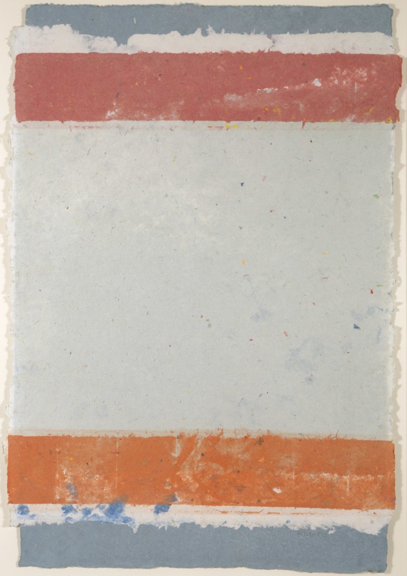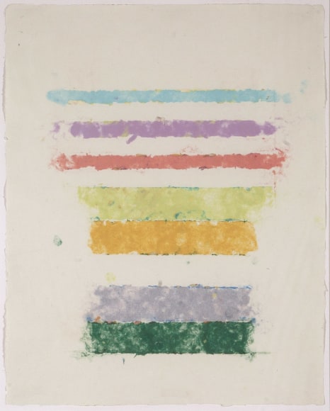 Kenneth Noland, known primarily for his large scale Color Field paintings, began making art with paper pulp in the late1970’s and continued to explore its possibilities well into the 1990’s. While he worked with a variety of materials and explored various media throughout his career, Noland found the use of paper pulp as a primary ingredient to be extremely satisfying in the directness of its application and physicality. In contrast to painting on canvas, the precision of papermaking lay in the process - the physical building of colored paper pulp to create a final image, a vehicle to generate depth of surface and ultimately a means explore color relationships in new and unexpected ways.