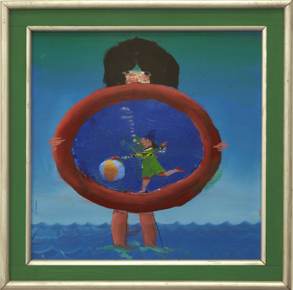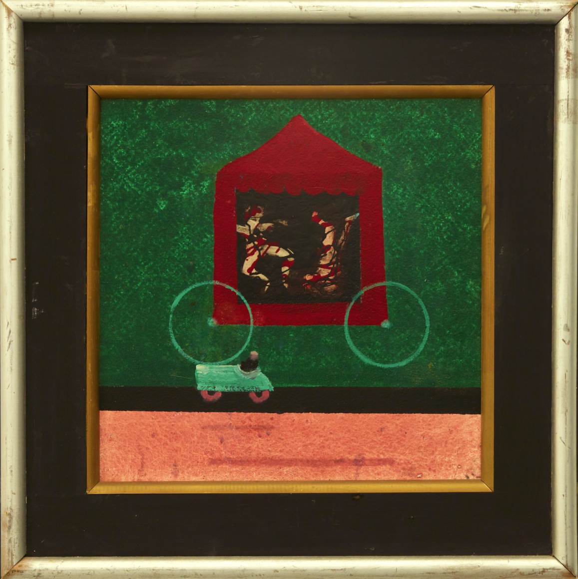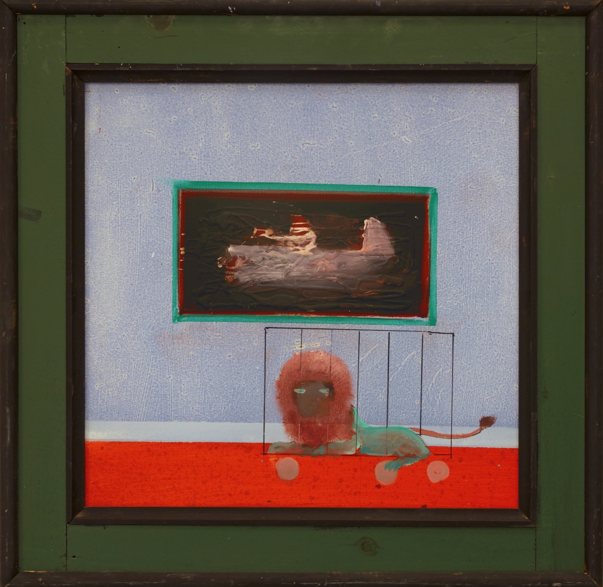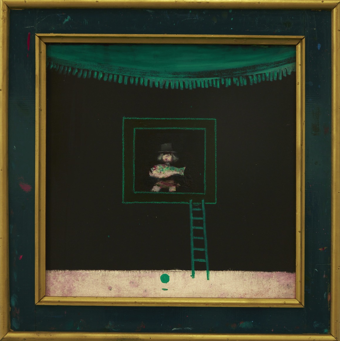 Robert Hamilton (1917‑2004) graduated from the Rhode Island School of Design in 1939. During World War II, he was a captain and P47 bomber pilot, flying one hundred missions and earning a Distinguished Flying Cross. Following the war, he returned to RISD to teach painting and drawing for thirty-four years. Artists Yvonne Jacquette, George Lloyd, David Estey, and Eric Hopkins are among his many students. Upon retiring in 1981, he moved full-time to Port Clyde, Maine, where he devoted the rest of his life to painting. A prolific artist, Hamilton produced over six hundred works, treating the image as a stage for depicting fantastical dreams, and invented narratives that brim with humor, pathos, and an unquenchable zest for life. His love of jazz—his son is the noted jazz saxophonist Scott Hamilton—is reflected in the syncopation of his colors and his invented imagery. “I knew my paintings had to be improvised, spontaneous, made up out of whole cloth, one thing leading to another, accidental, a series of metamorphoses, surprised arrivals, ” he wrote. His friend and neighbor, Andrew Wyeth, called Hamilton “a real painter.”