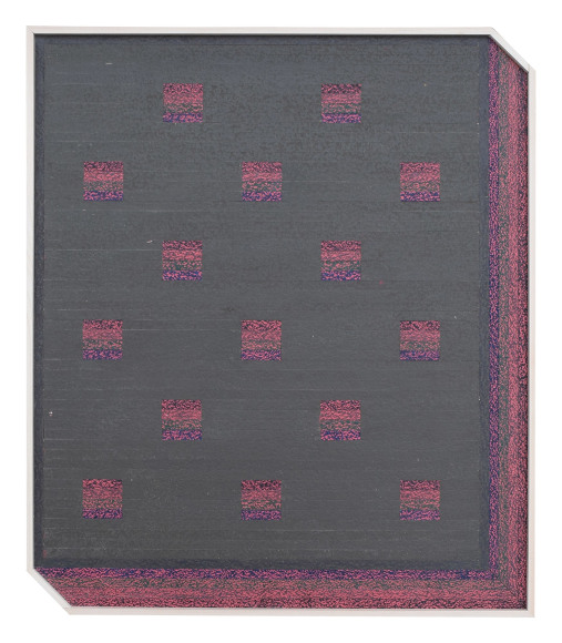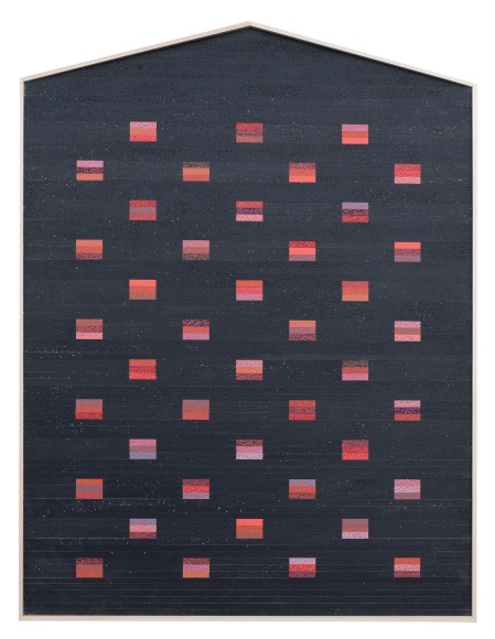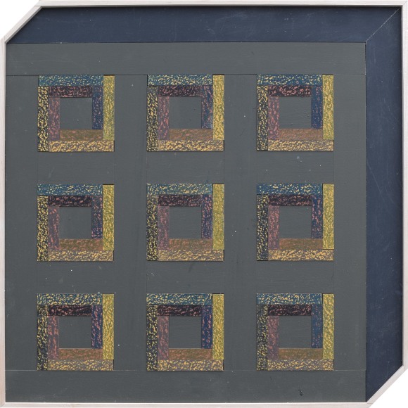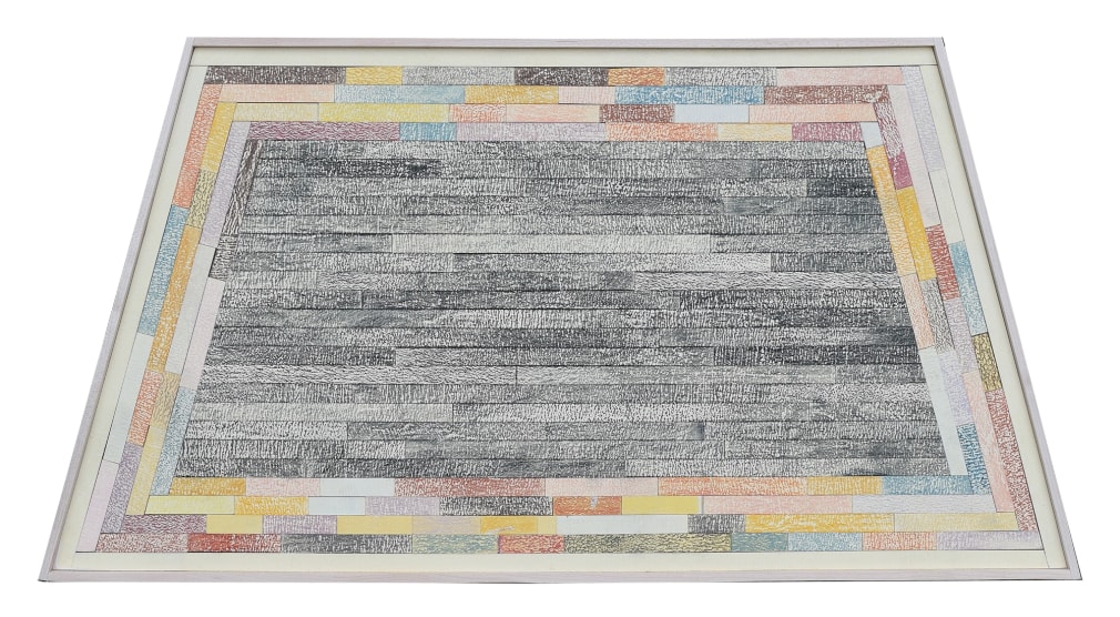 Latex, colored pencil, wood assemblage